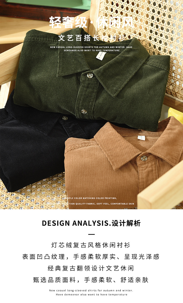コーデュロイ長袖シャツ男性春秋カジュアル文芸ゆるい日系レトロ百合長袖シャツコート