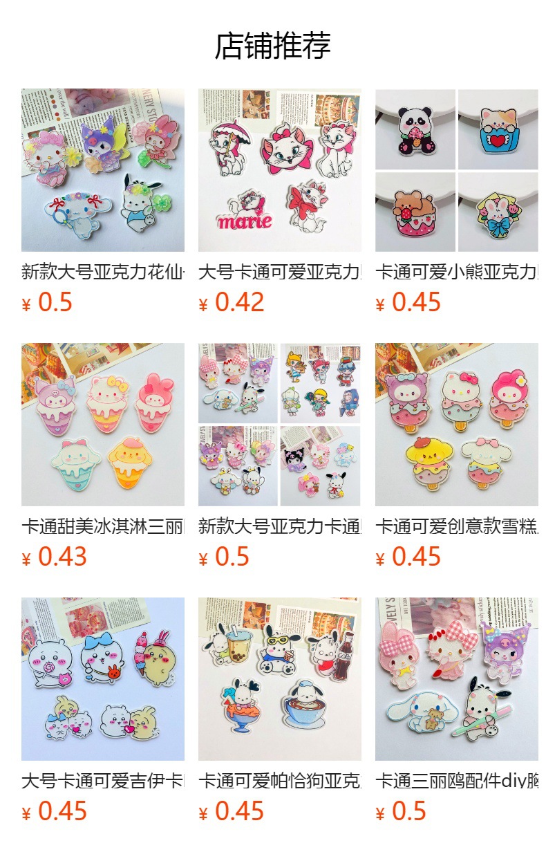漫画かわいい大型アクリルパッチ diy ジュエリーアクセサリーヘアピンブローチバッジヘアピン冷蔵庫マグネットアクセサリー
