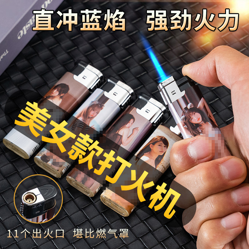 【卸価格50本1箱】美人新直沖青炎防風ライター創意個性男性ライター