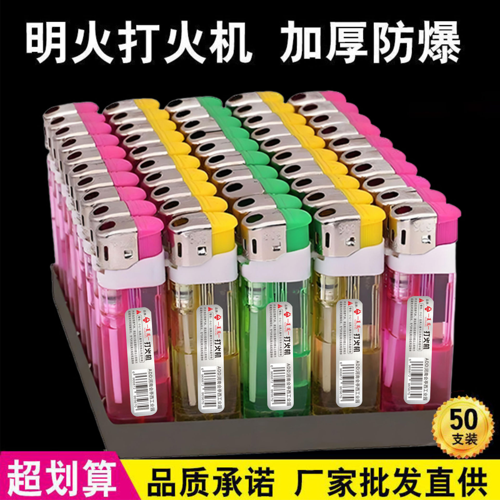 特价50支明火打火机家用大号一次性打火机便利店超市包邮坏机包赔