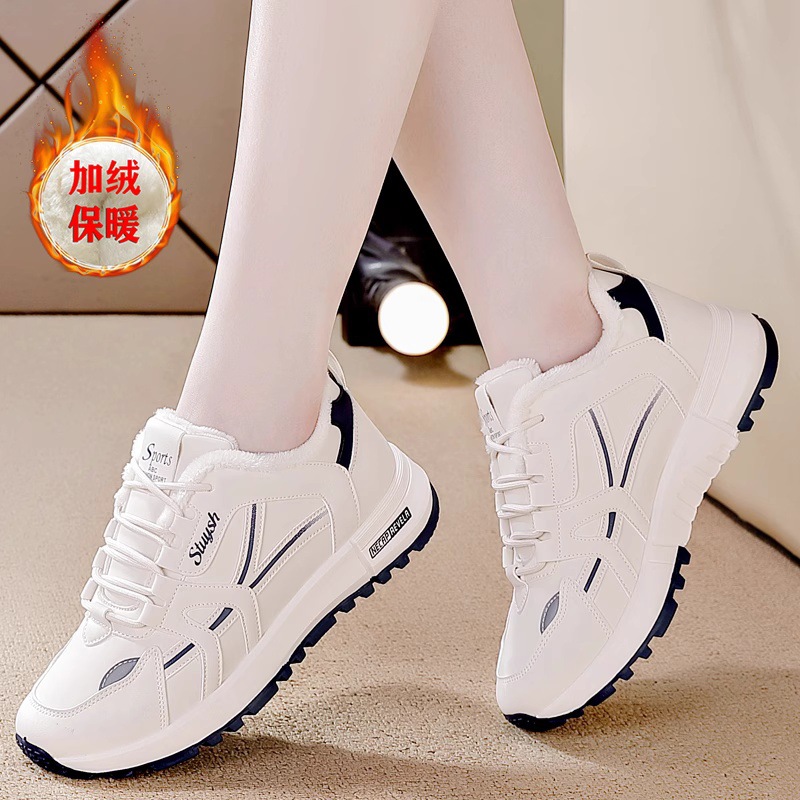 跨境加绒真皮运动鞋女2025秋冬款轻便跑步鞋防滑保暖休闲阿甘鞋女