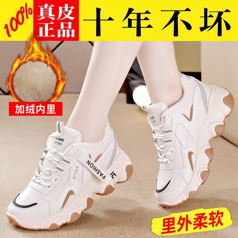 秋冬女鞋真皮老爹鞋女2025新款秋季鞋子女百搭软底休闲女士运动鞋