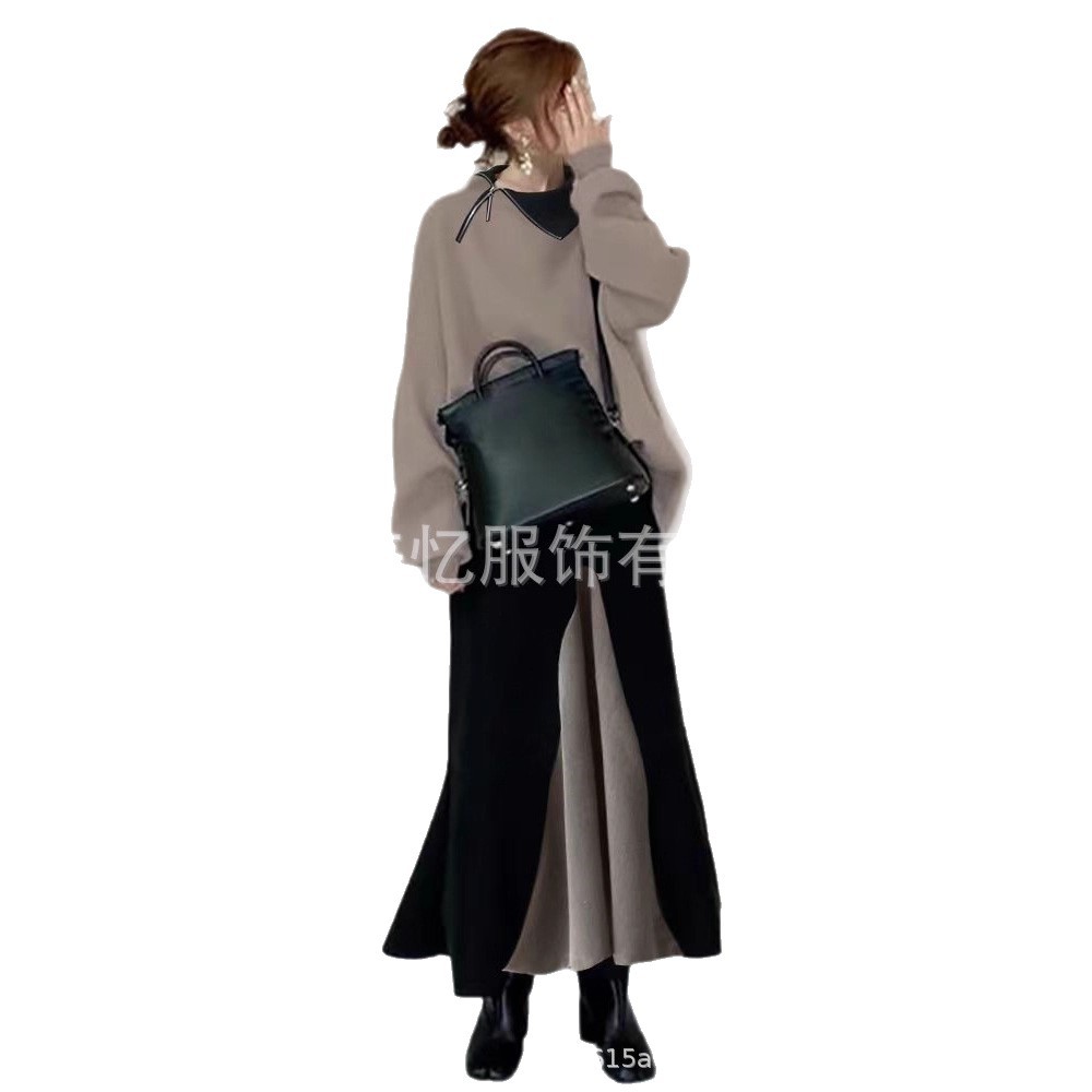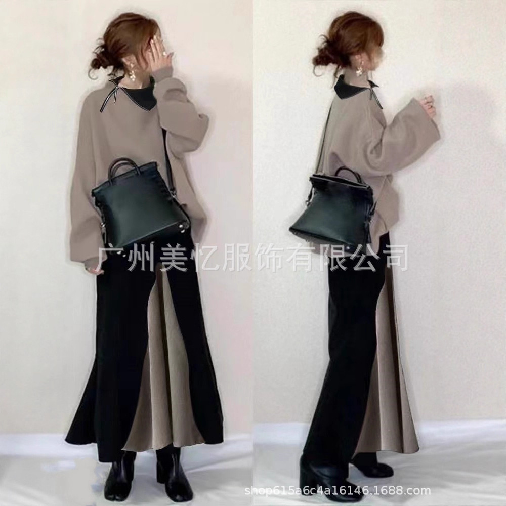 現物日系2025早春コウモリ袖高襟純色セーター半身スカート