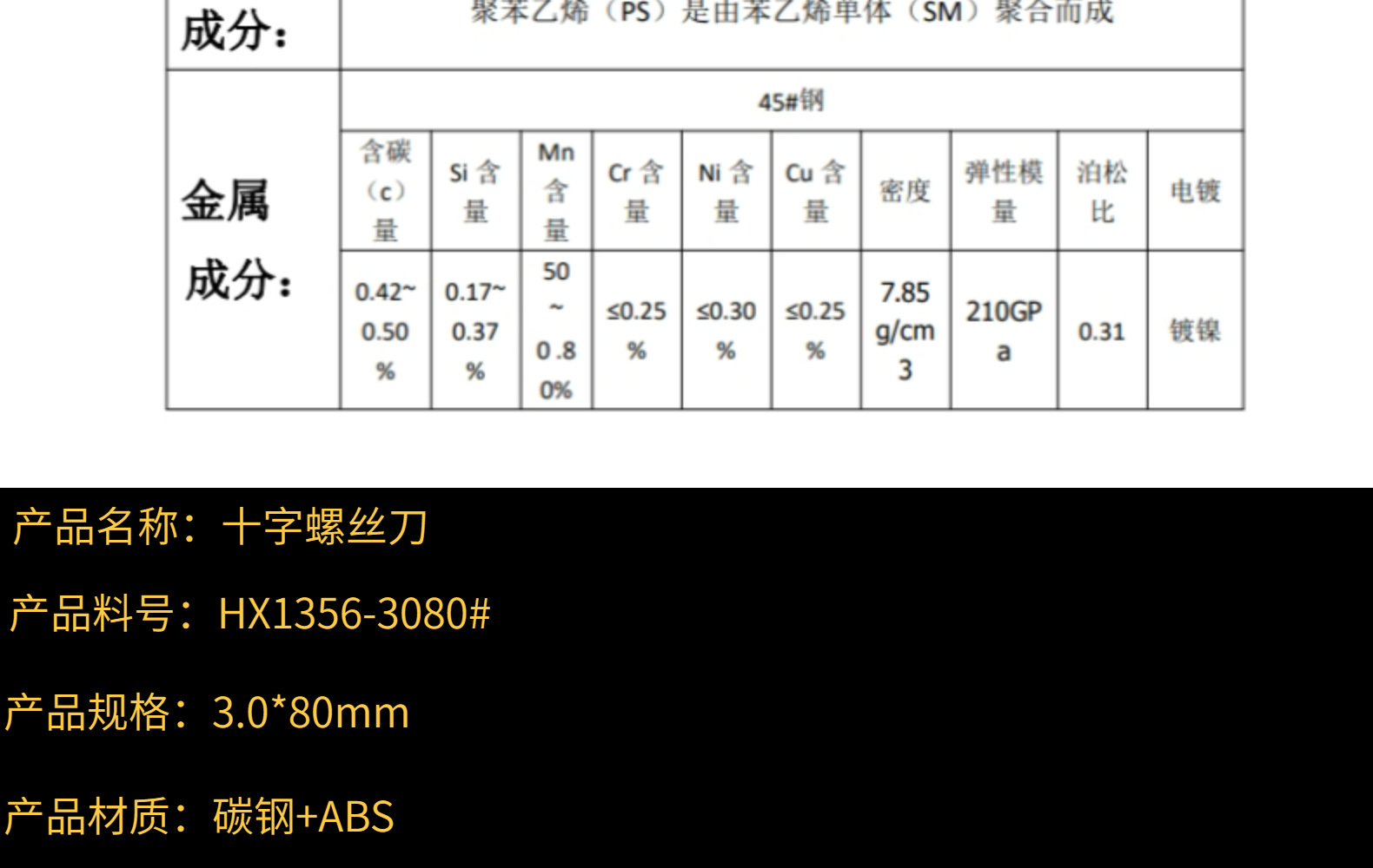 華恒鑫環境保護abs材料と硬帯磁気塩霧テスト48h透明3.0*80mm十字小ドライバー