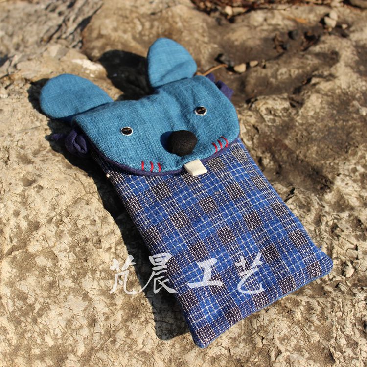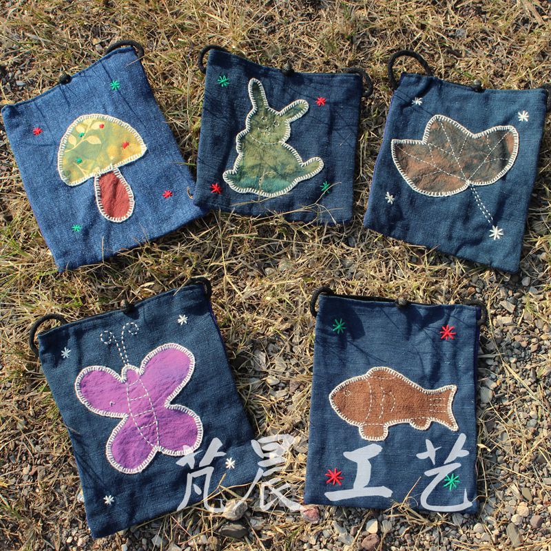 民族风蓝染手工刺绣动物女式斜挎小清新便携布艺包