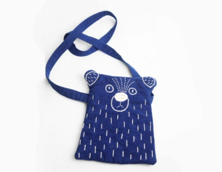 手作り藍染刺繍熊携帯バッグレトロ布芸可愛い斜めショルダーバッグ非遺文創民族文化プレゼント