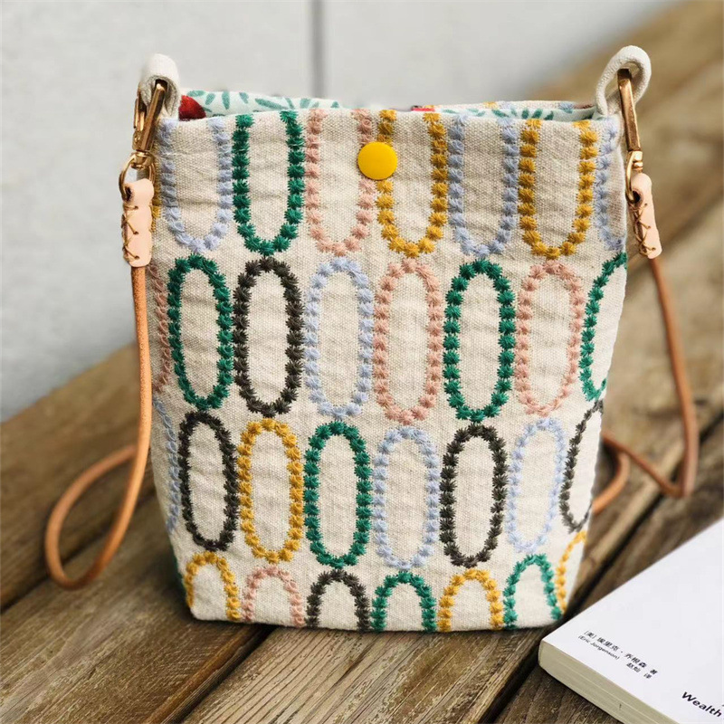 AB面手作り非皆川明綿麻刺繍布芸口紅包携帯電話バッグ機能小包卸売り