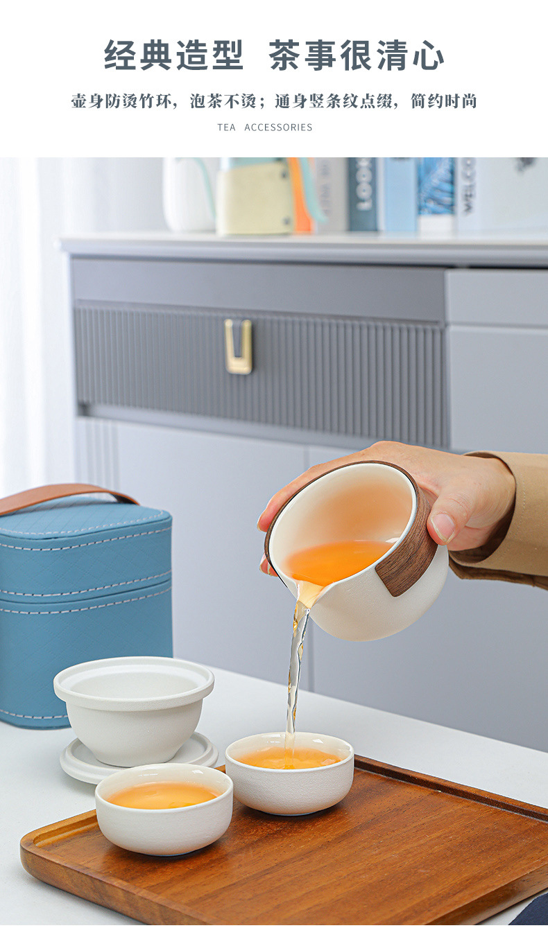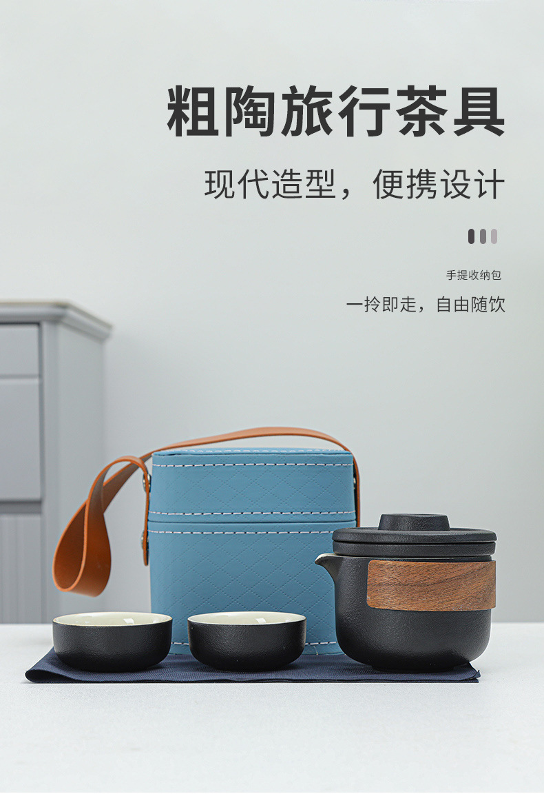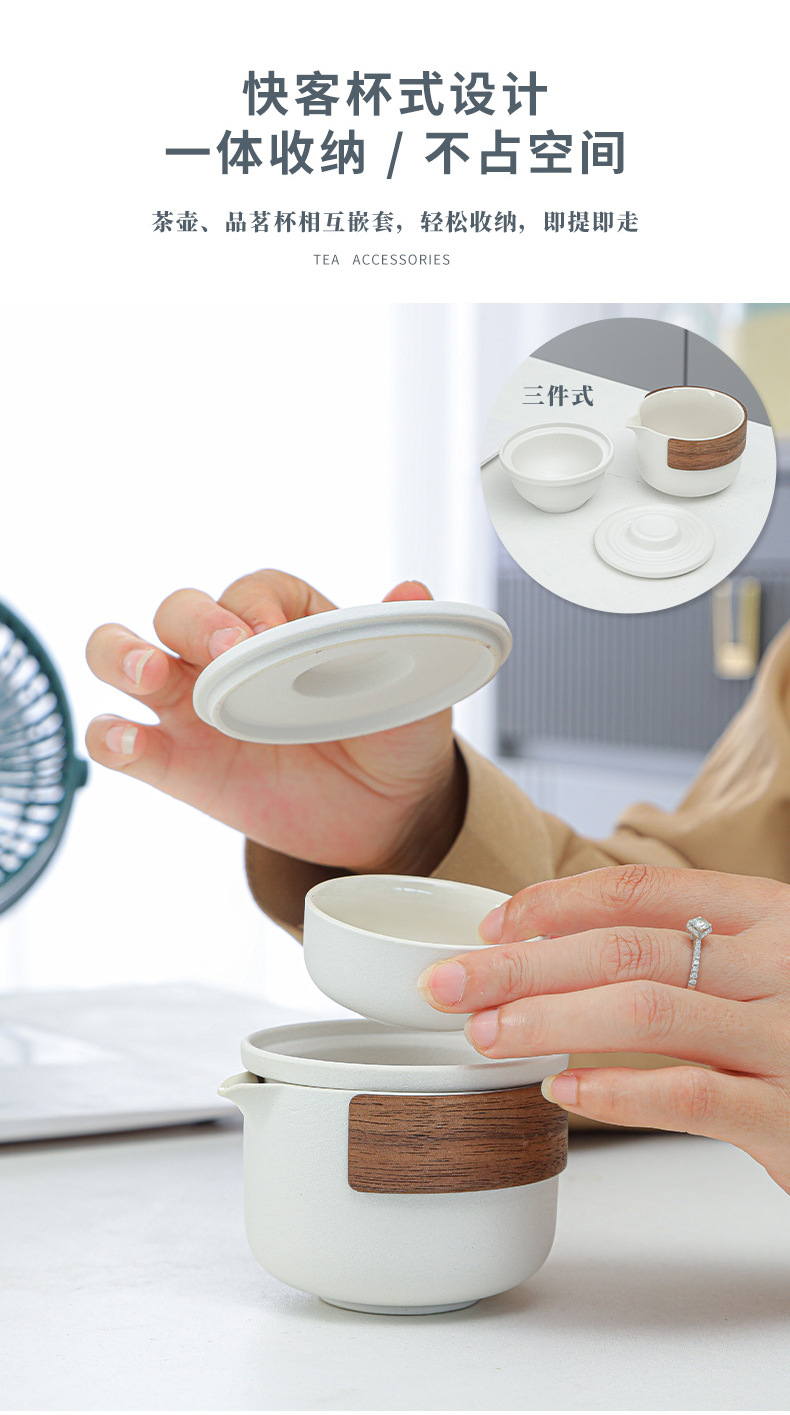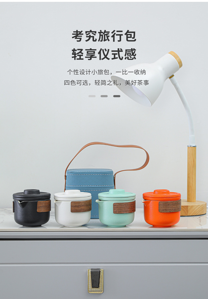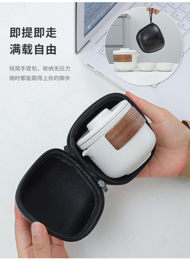 旅行茶器セット携帯汝窯快客杯一壺三杯屋外ビジネスプレゼントロゴお土産