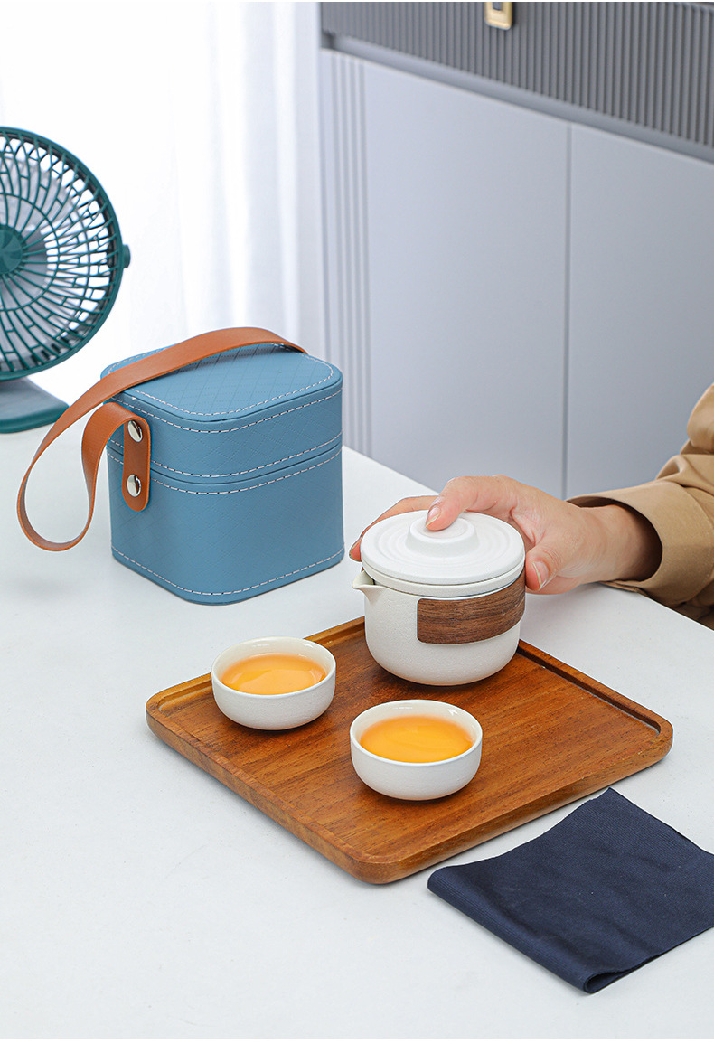 ポータブルトラベルティーセットカンフーティーカップクイックカップ1ポット2カップアウトドアポータブルホリデーギフト