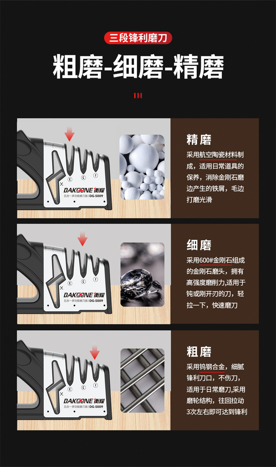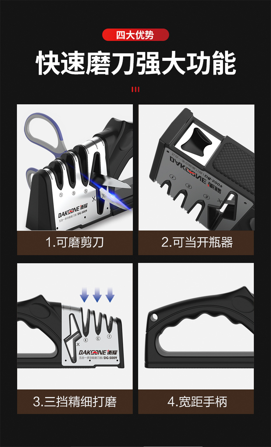 跨境家用磨刀器四段磨菜刀神器多功能钨钢磨刀棒粗细金刚砂磨刀石