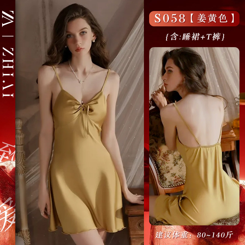 Aolan プリンセスアマゾンアイスシルクパジャマ女性のナイトガウン背中の開いたサスペンダーナイトガウン胸パッド付き女性のホームウェア QD6