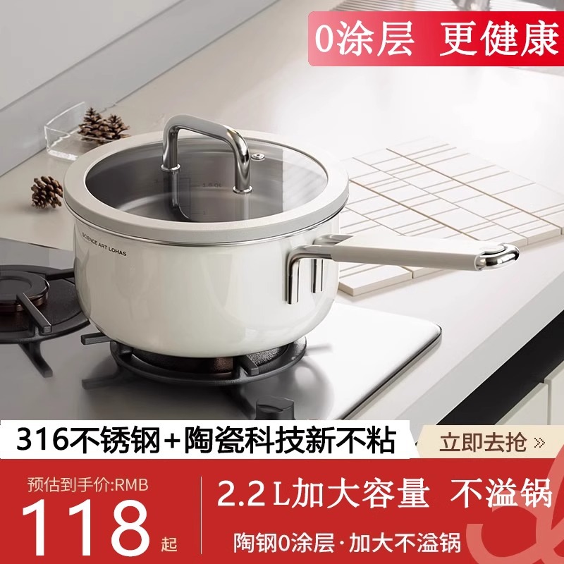 ドイツ母子級316ステンレス陶磁器小乳鍋0コーティング赤ちゃん補助食鍋赤ちゃん煎り一体スープミルク