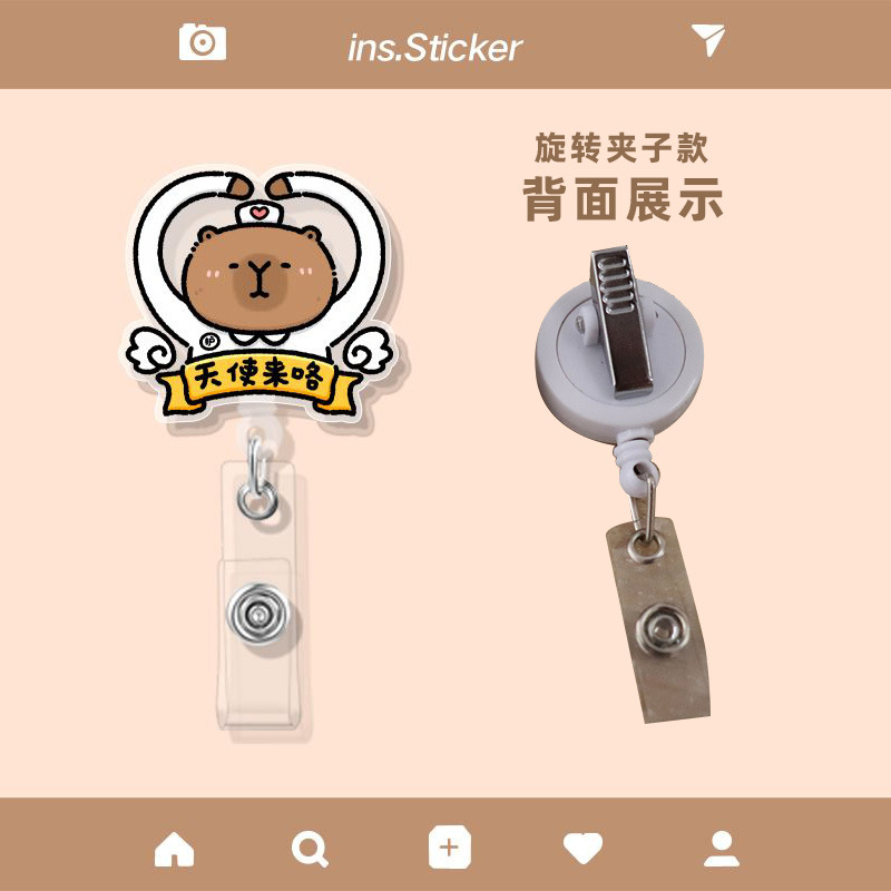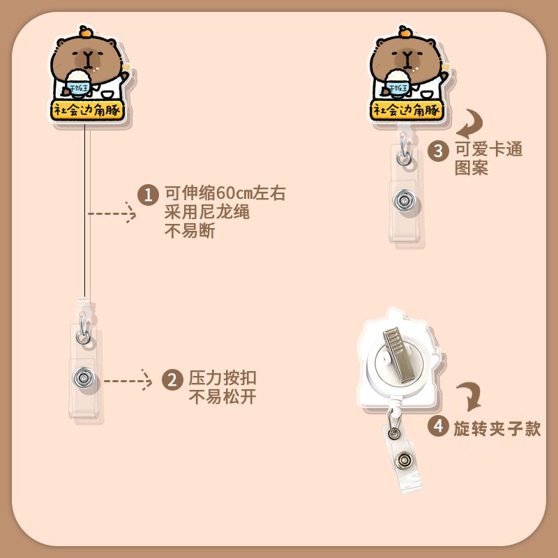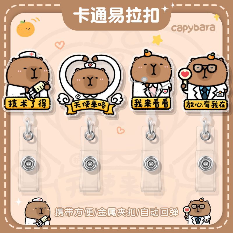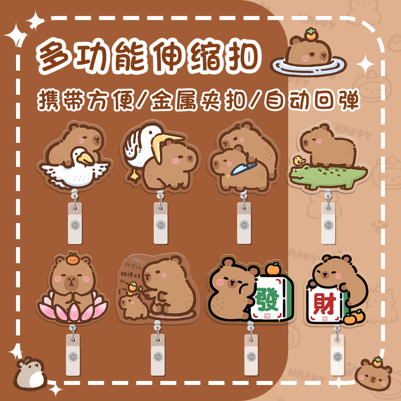 引きやすいボタン多機能伸縮ボタン漫画かわいいカピバラ胸牌証セットクリップボタン愛崗敬業カピバラ