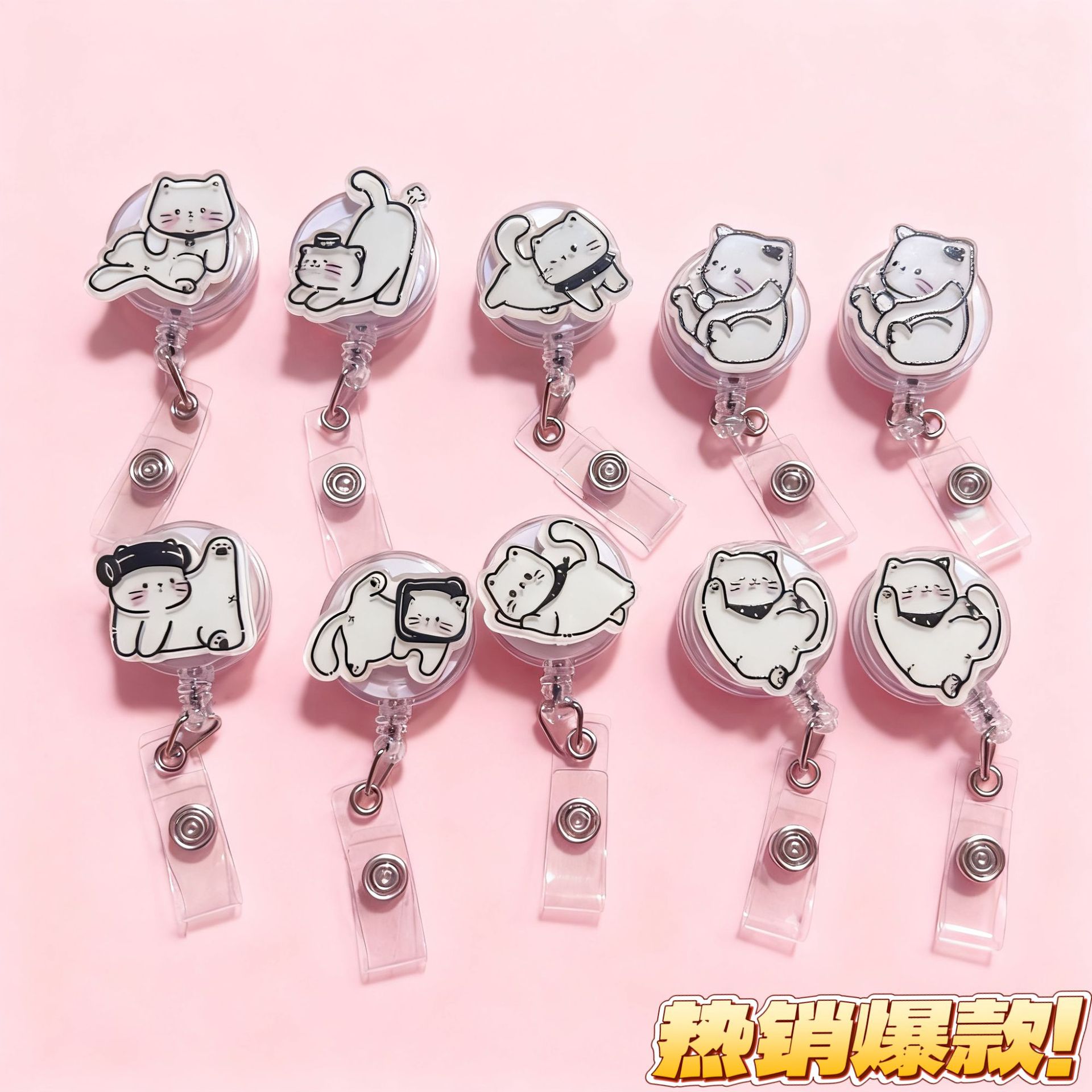 卡通猫咪易拉扣PVC护士胸牌可伸缩易拉扣工牌可伸缩易拉得挂绳