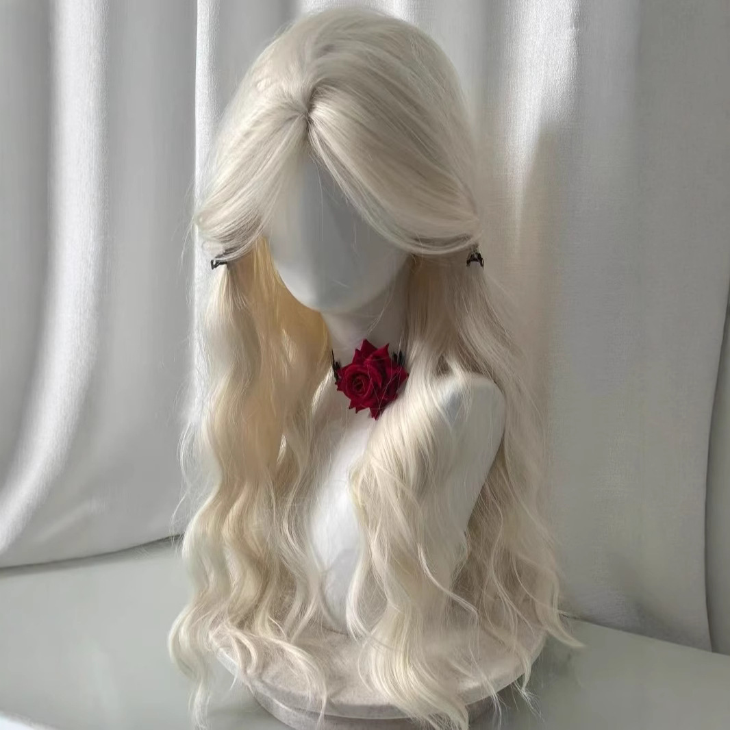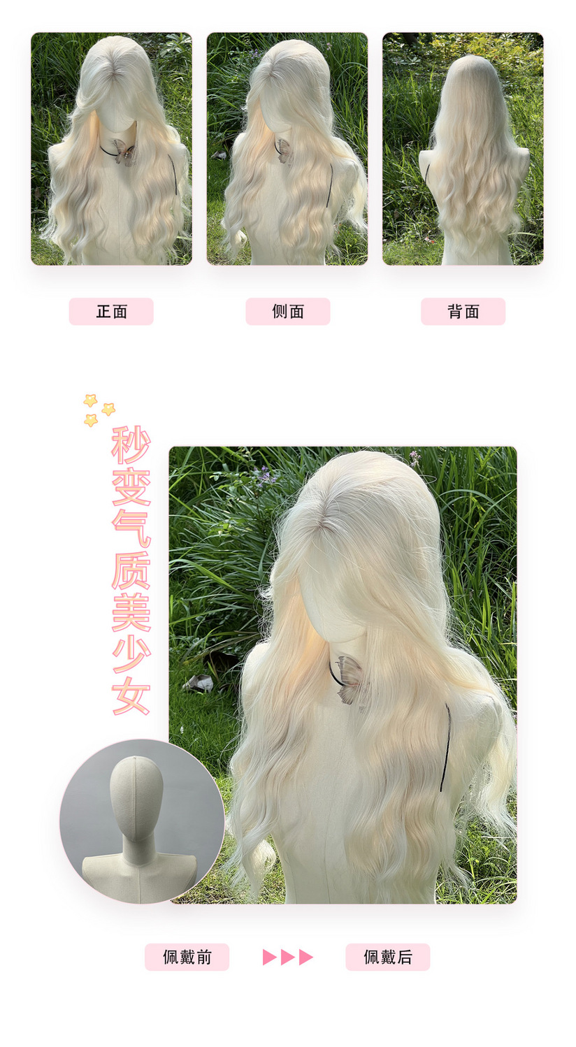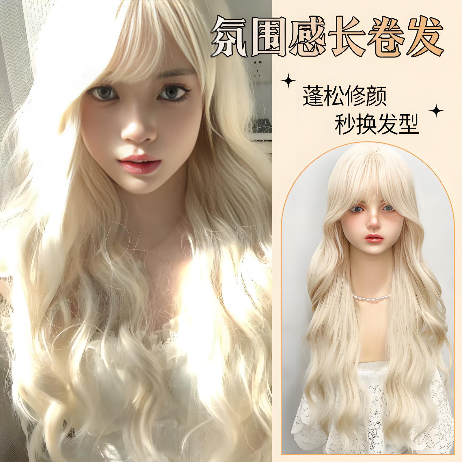 假发长直发女白金色浅长卷发齐刘海大波浪甜美Lolita显白全头套