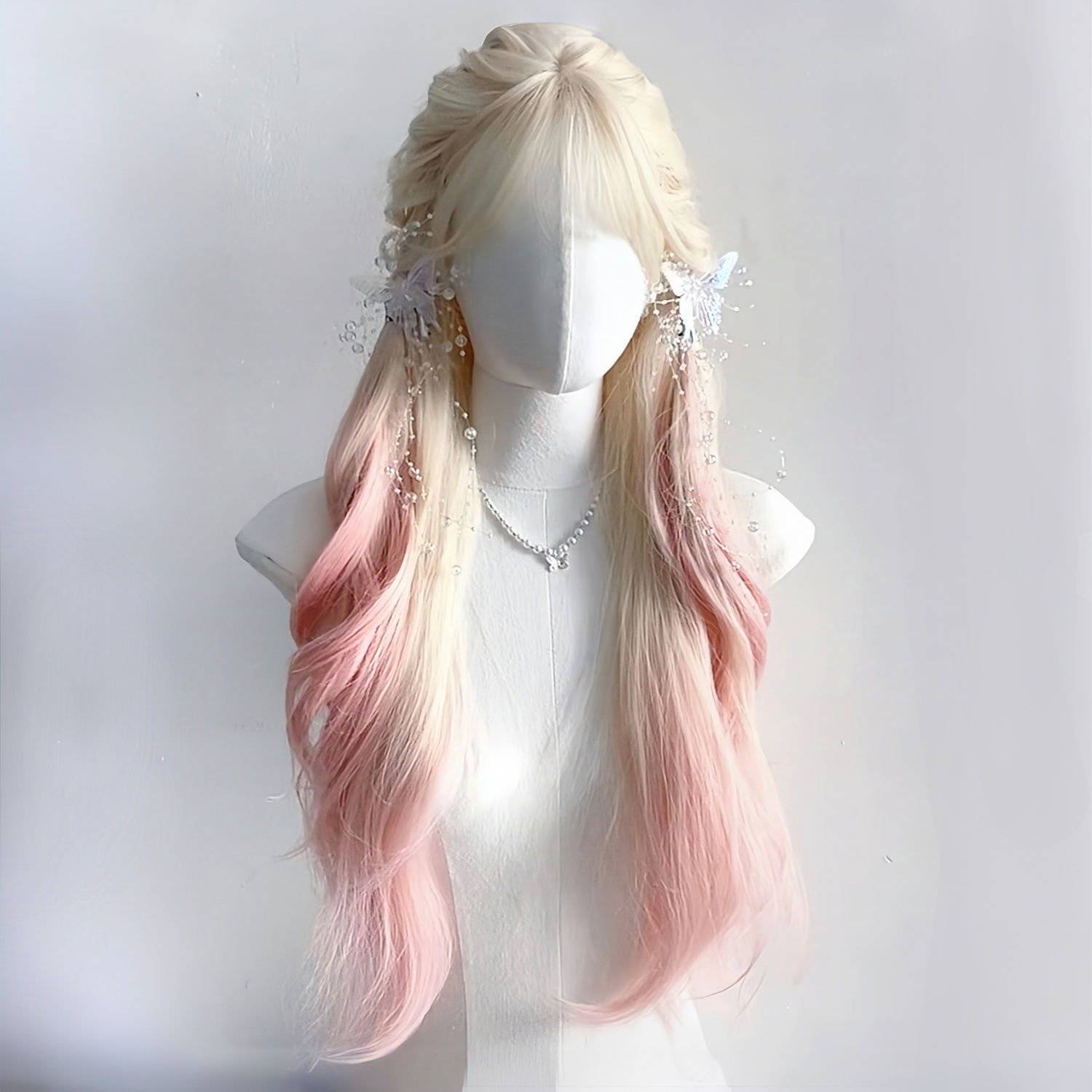 かつらの女性のプラチナのグラデーションの粉の雰囲気感の長いカールの全頭カバーの甘い自然なLolitaの全体のトップのシミュレーションの髪カバー