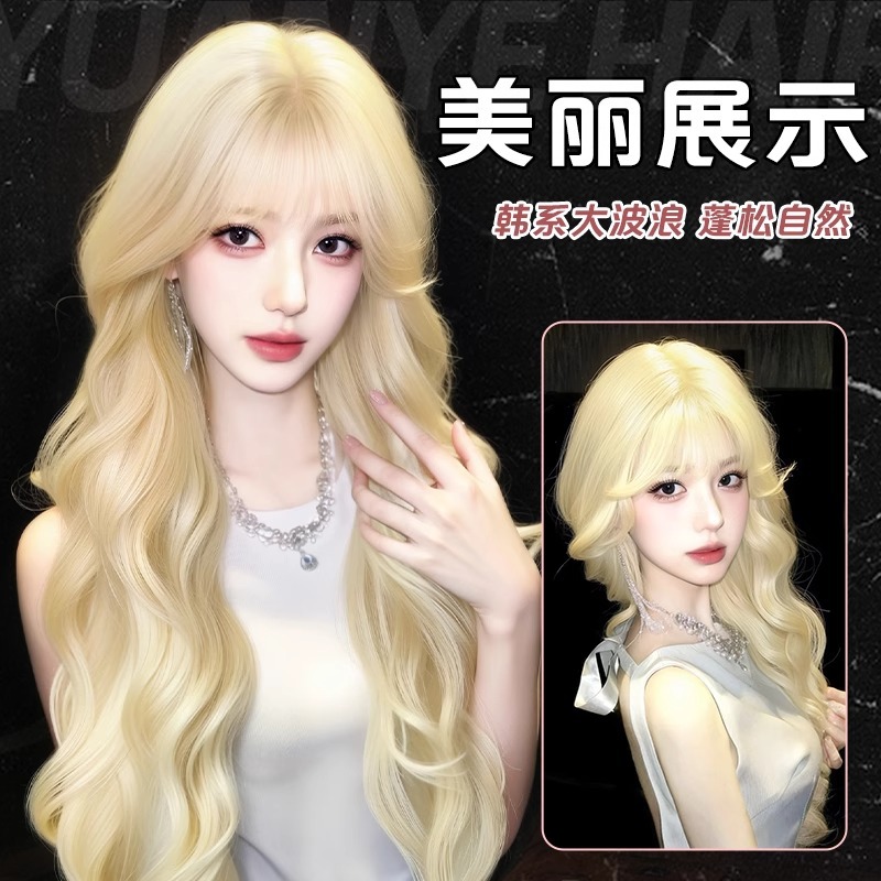 假发全头套女奶白金色大波浪甜美可爱刘海长卷发lolitta日常假发