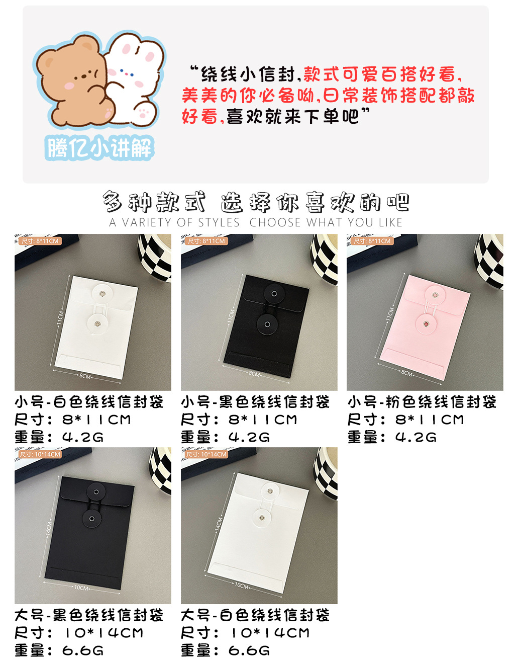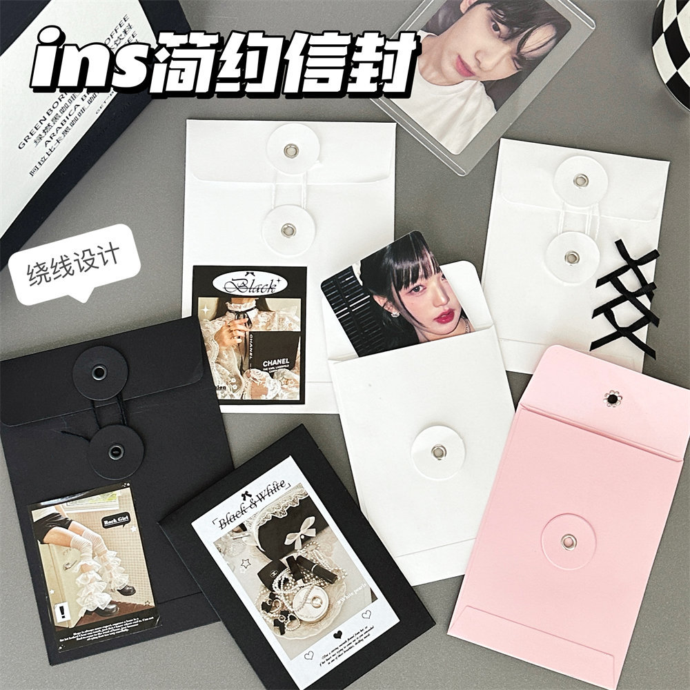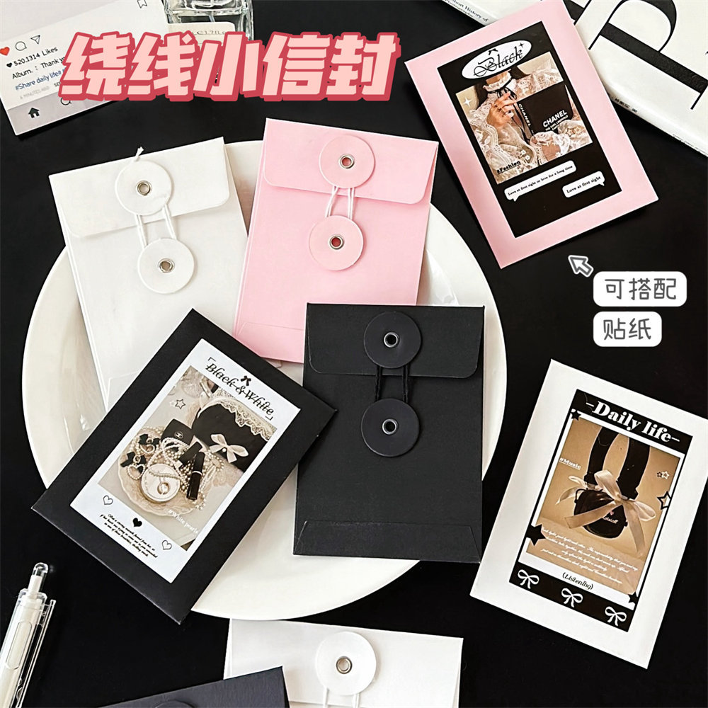 インスタ风白黒巻线封筒クラフト纸封筒袋小カード手帳素材梱包高级感小ファイルバッグ