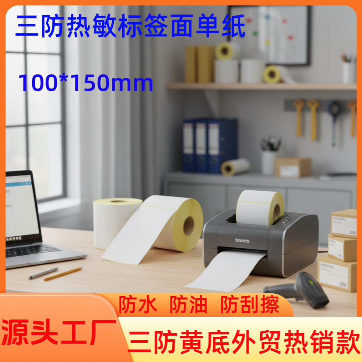 跨境三防热敏不干胶纸100*150黄底格拉辛标签打印面单纸