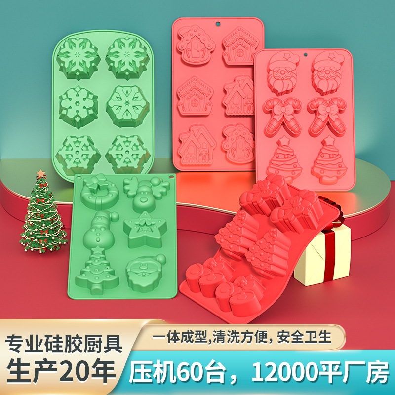 メーカー直販食品級シリコンケーキモールド6連クリスマスツリー雪だるまプレゼント祝日類DIY焙煎金型