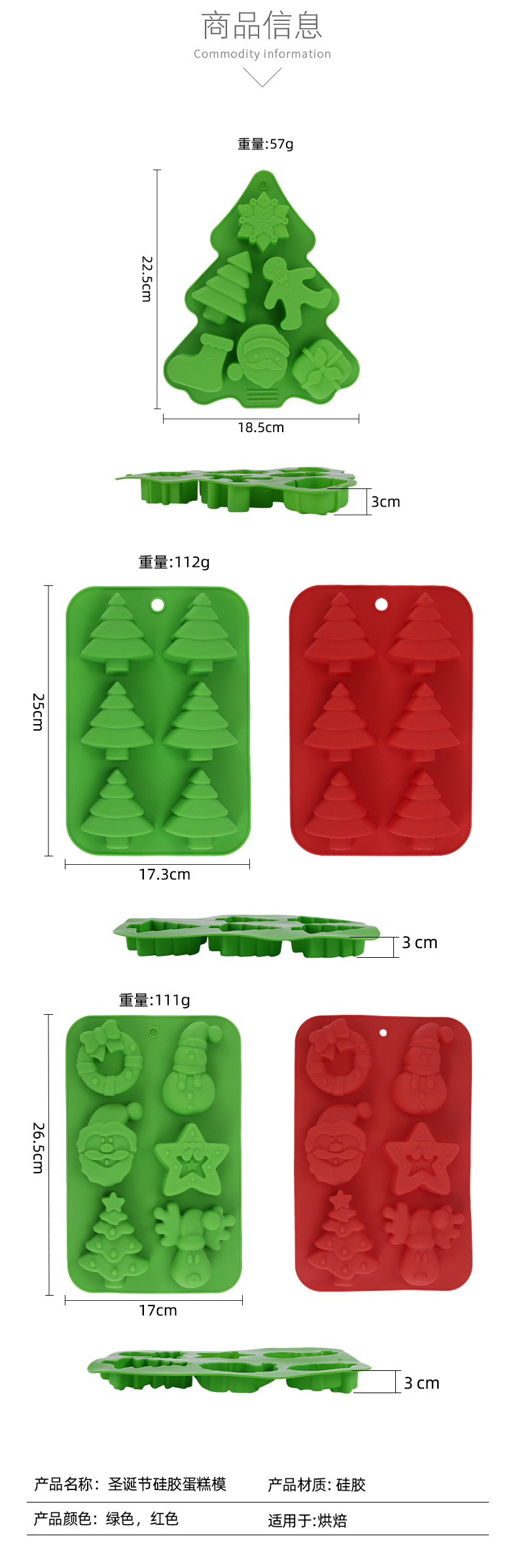 クロスボーダークリスマスツリー食品級シリカゲルベーキングプレートDIYビスケットキャンディチョコレートケーキパン金型