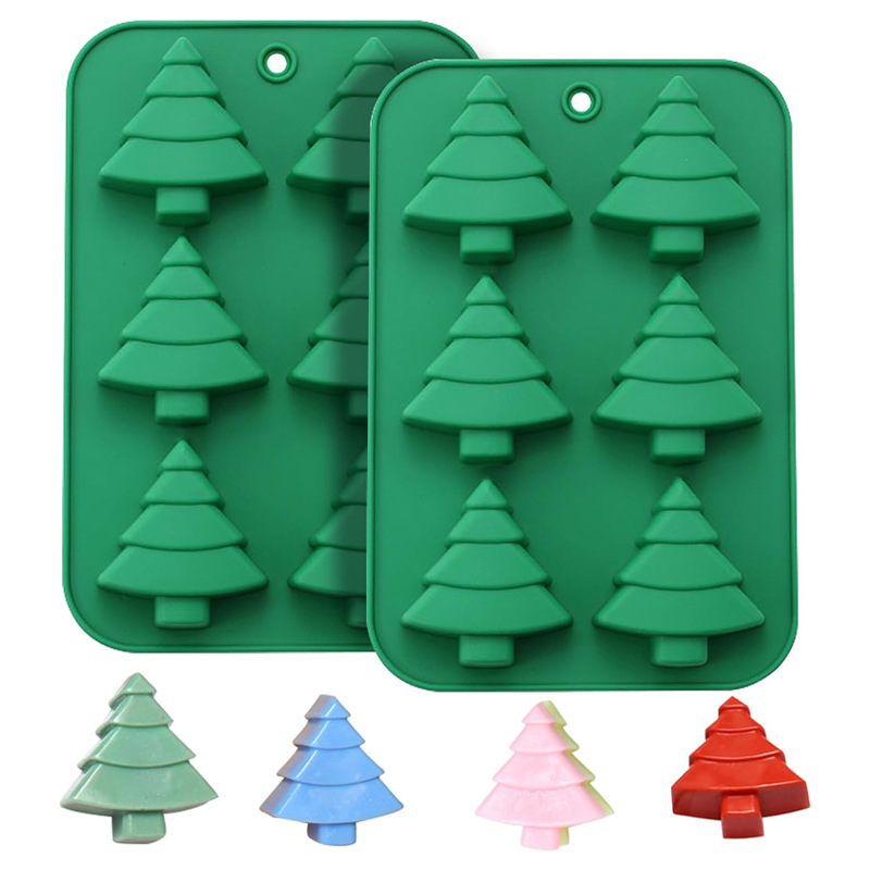 工場直販 食品グレードシリコンケーキ型 クリスマスツリー6穴型 DIY手作り石鹸型 ベーキング型
