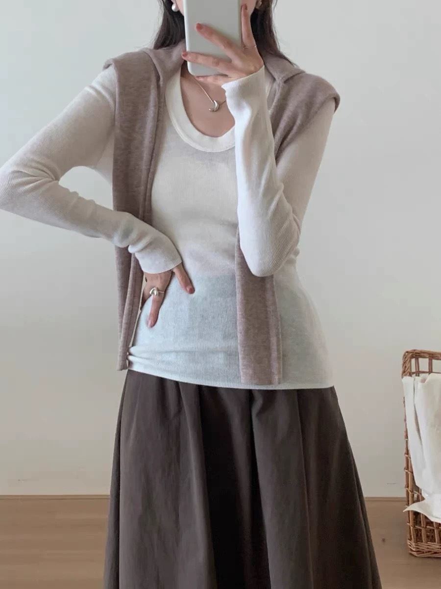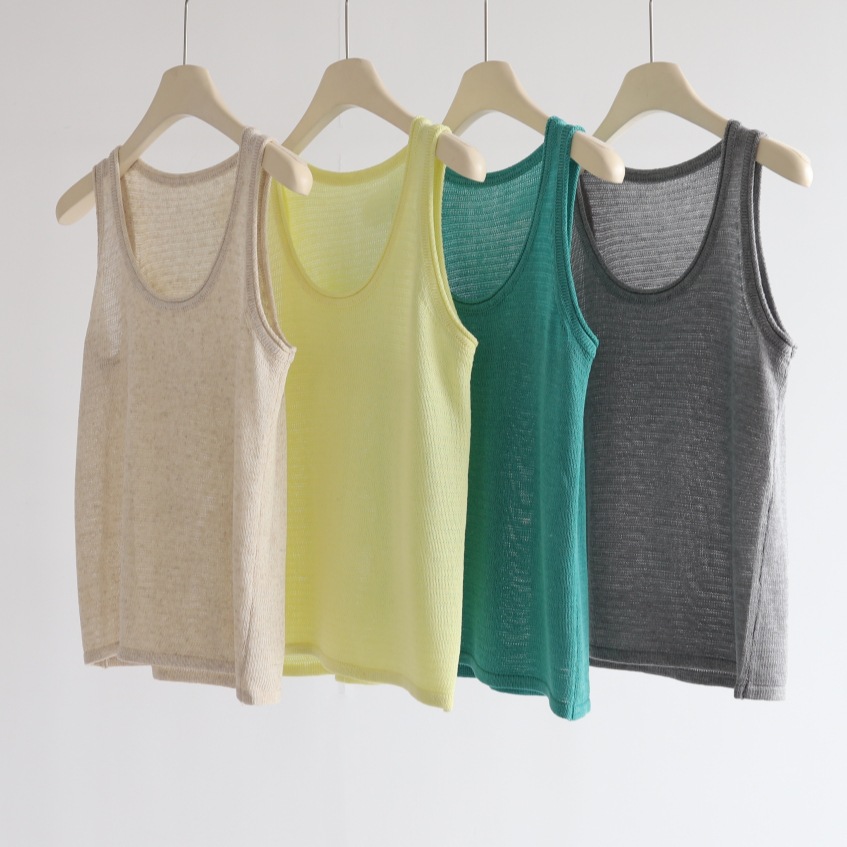 天糸亜麻U襟袖なしニット女装ベスト上着ゆったりした中に怠惰でシンプルな中にベスト上着を着る