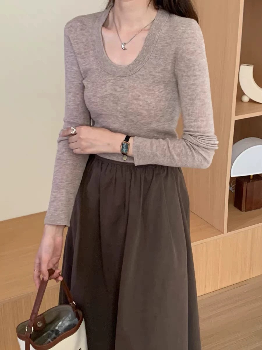 爆款全羊毛针织衫2025早秋女装长袖U领气质打底衫修身显瘦上衣女