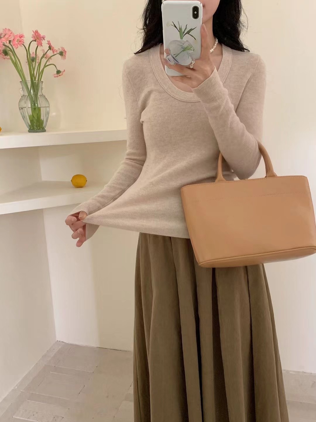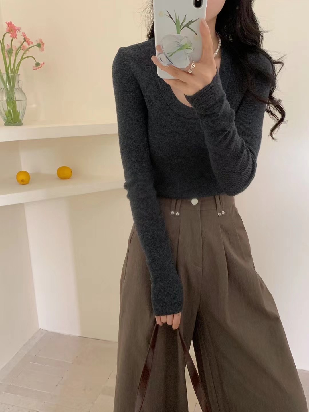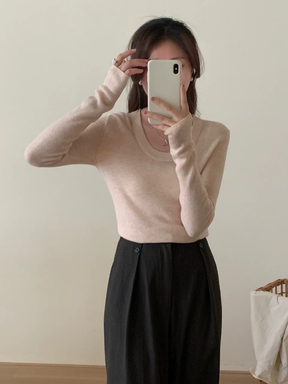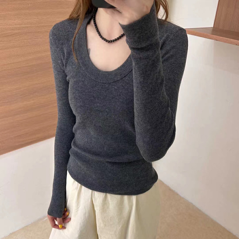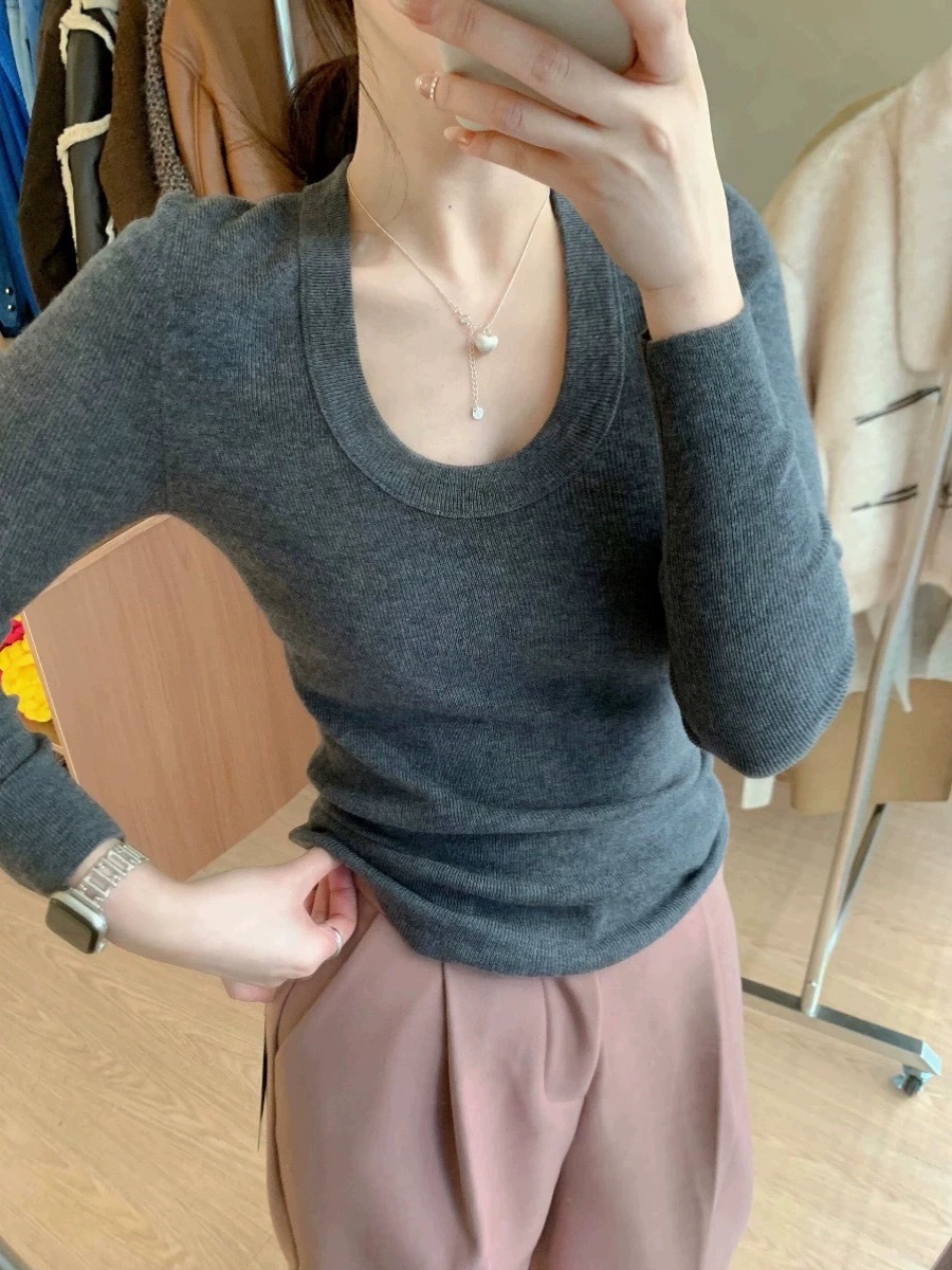 100 ウール U ネック韓国無地ファッションシンプルなニット弾性底シャツ多用途女性のセータートレンディなクラシックなスタイル