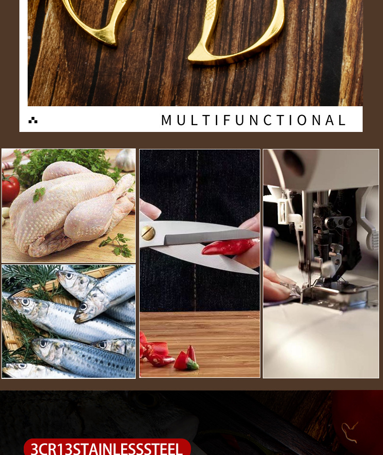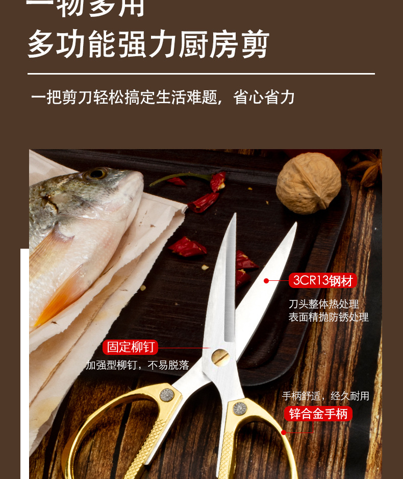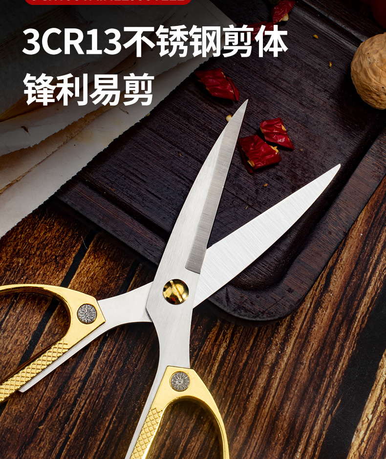 林太作ステンレス家庭用ハサミ強力鋒利彩チタン色切り鶏骨切りエビ切りカニの露店ハサミ