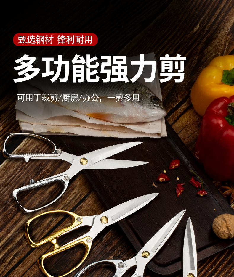 クロスボーダー卸売ステンレス家庭用キッチン用ハサミ多機能専用強力鶏骨ハサミ補助食大ハサミ