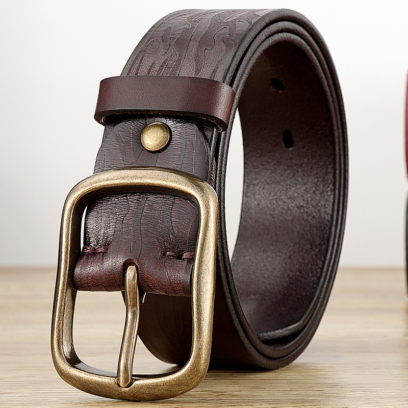2024トップ層純牛革ベルト男性カジュアル手作りベルト男性本革針バックル正規品レトロズボンバンド潮