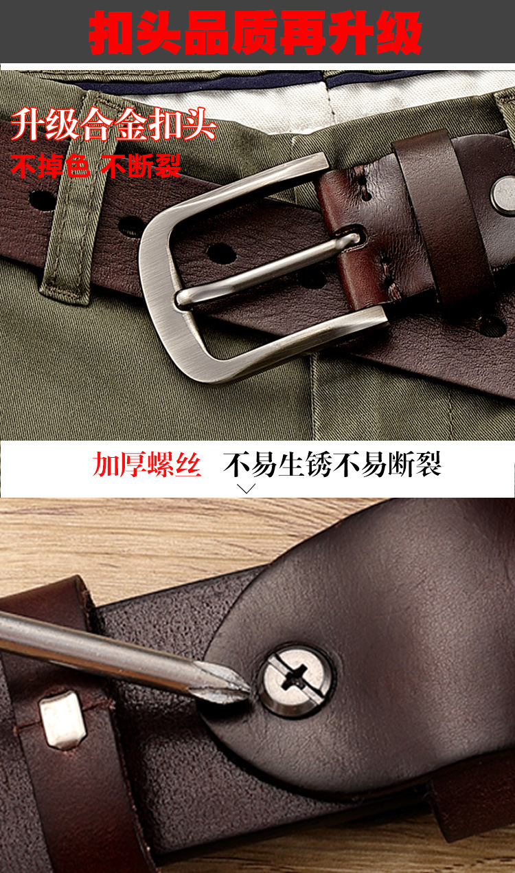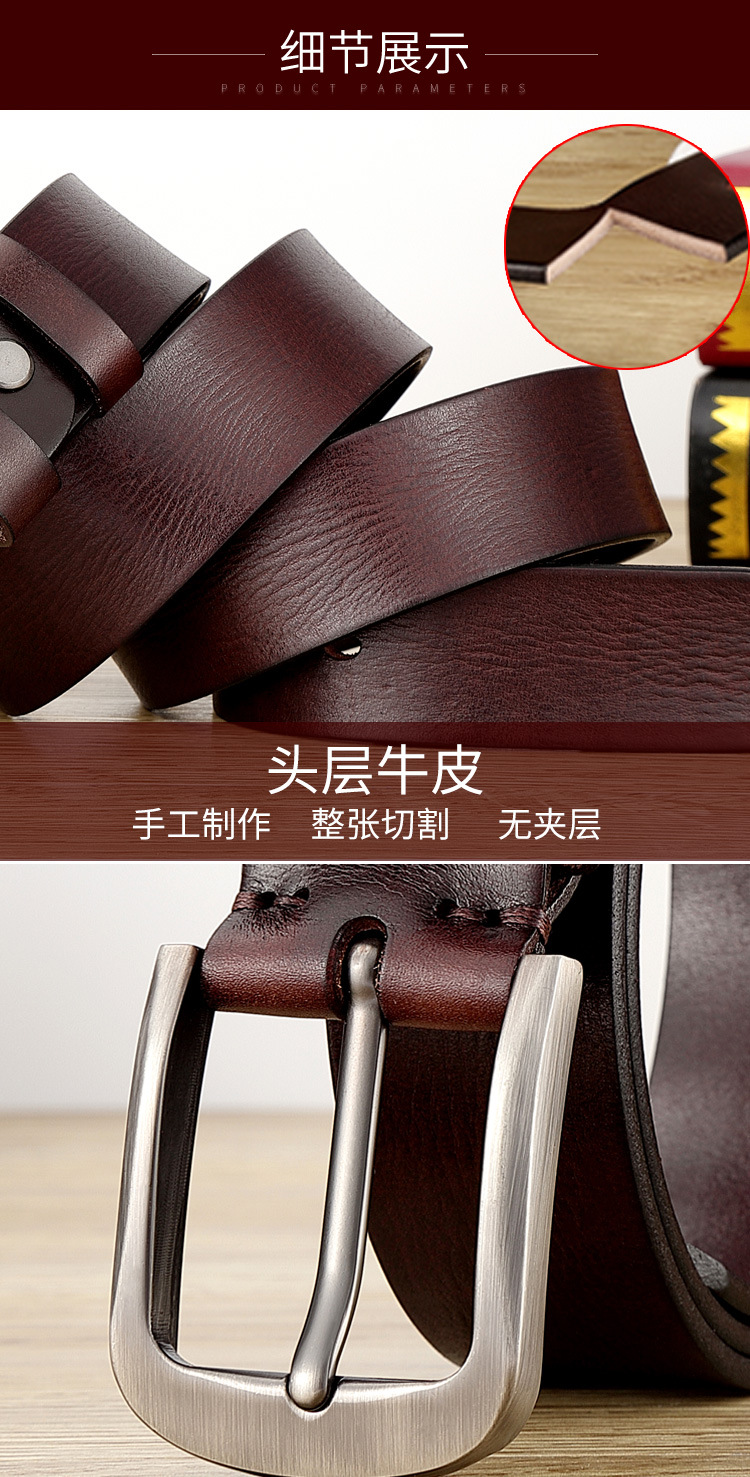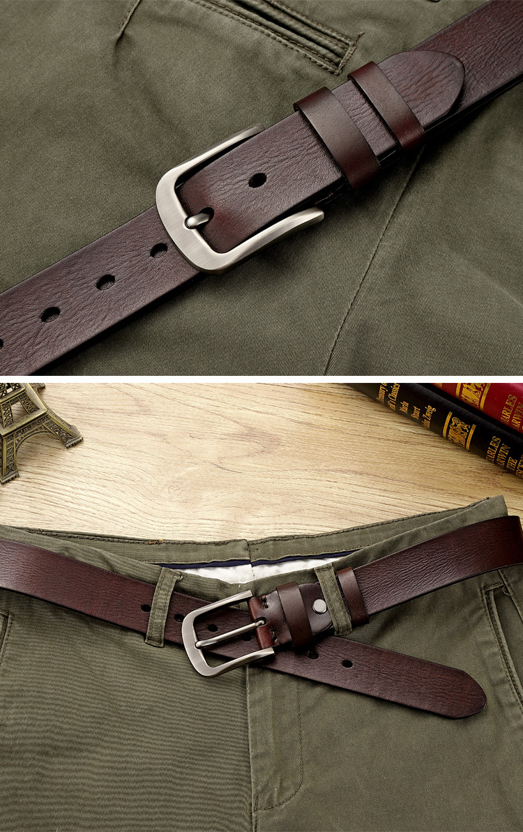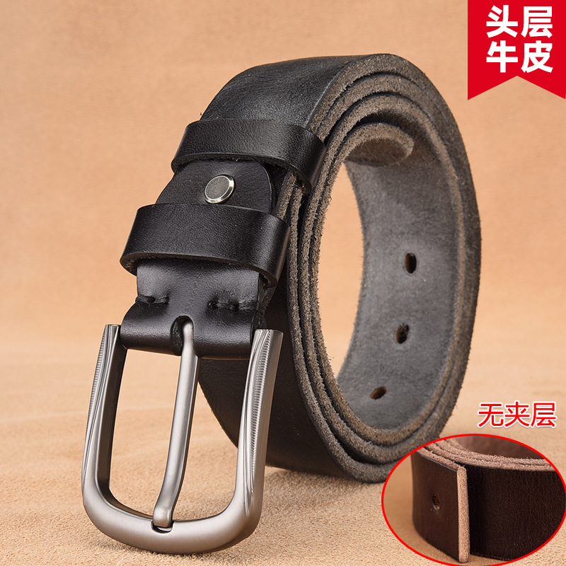 本牛革ベルト男性針バックル青年ビジネスカジュアル手作りベルト頭層真牛革レトロズボンベルト