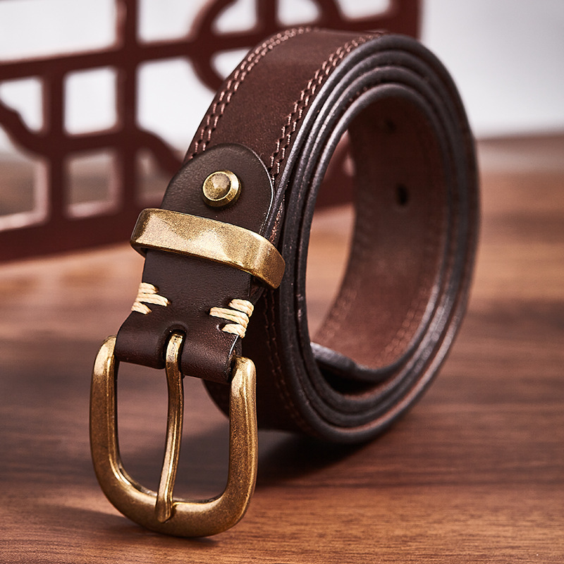 ベルト男本革真鍮バックルトップ層本牛革レトロ水洗いベルト青年手作りコンビネーションカジュアルパンツ潮