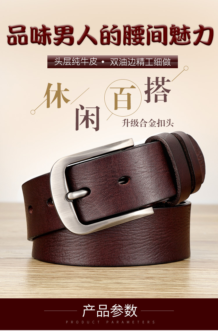 トップ層牛革ベルト男性本革針バックルオリジナル韓国版ファッションズボンベルト正規品カジュアル中年青年ベルト男
