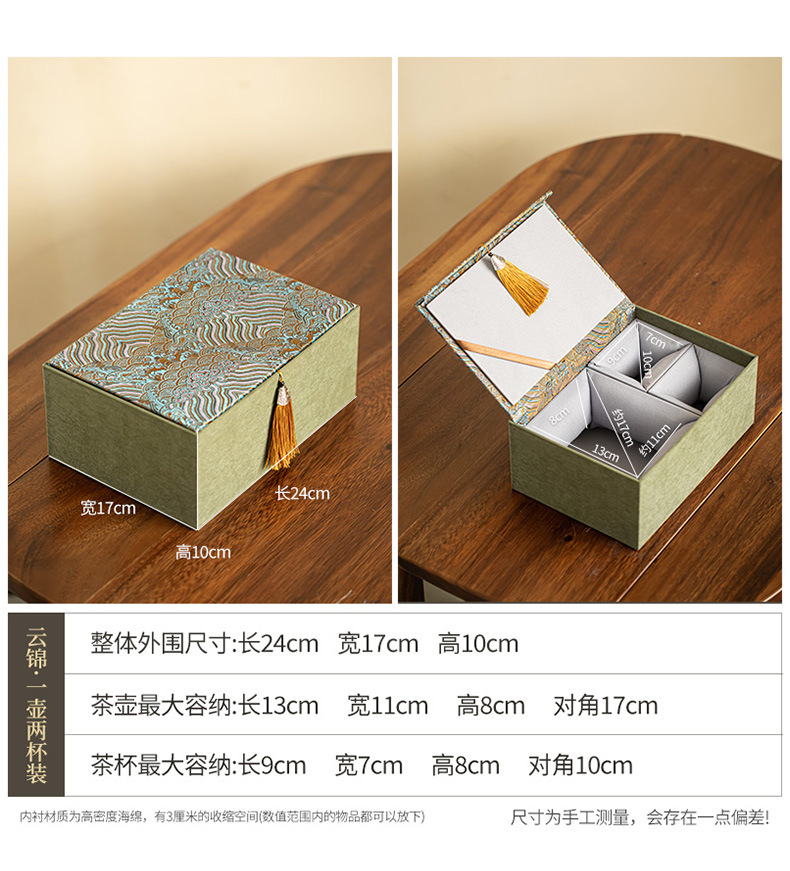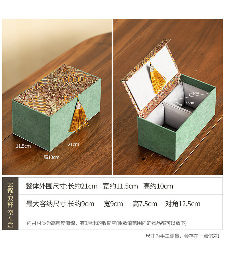 雲錦ギフトボックス、ポット1個、カップ2個、包装箱、ティーセット収納ボックス、紫砂ティーカップ、ティーポット、錦箱、カスタムロゴ