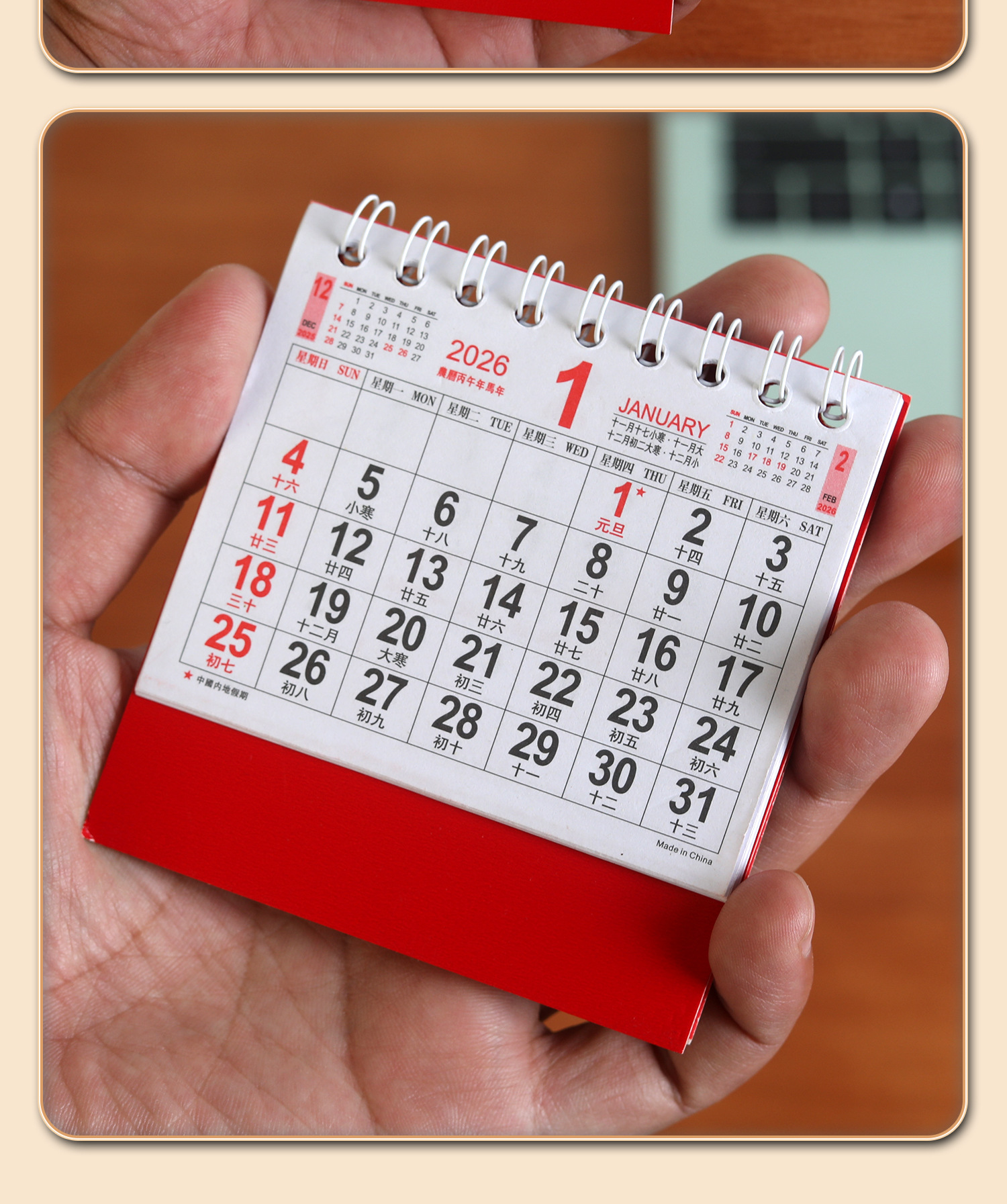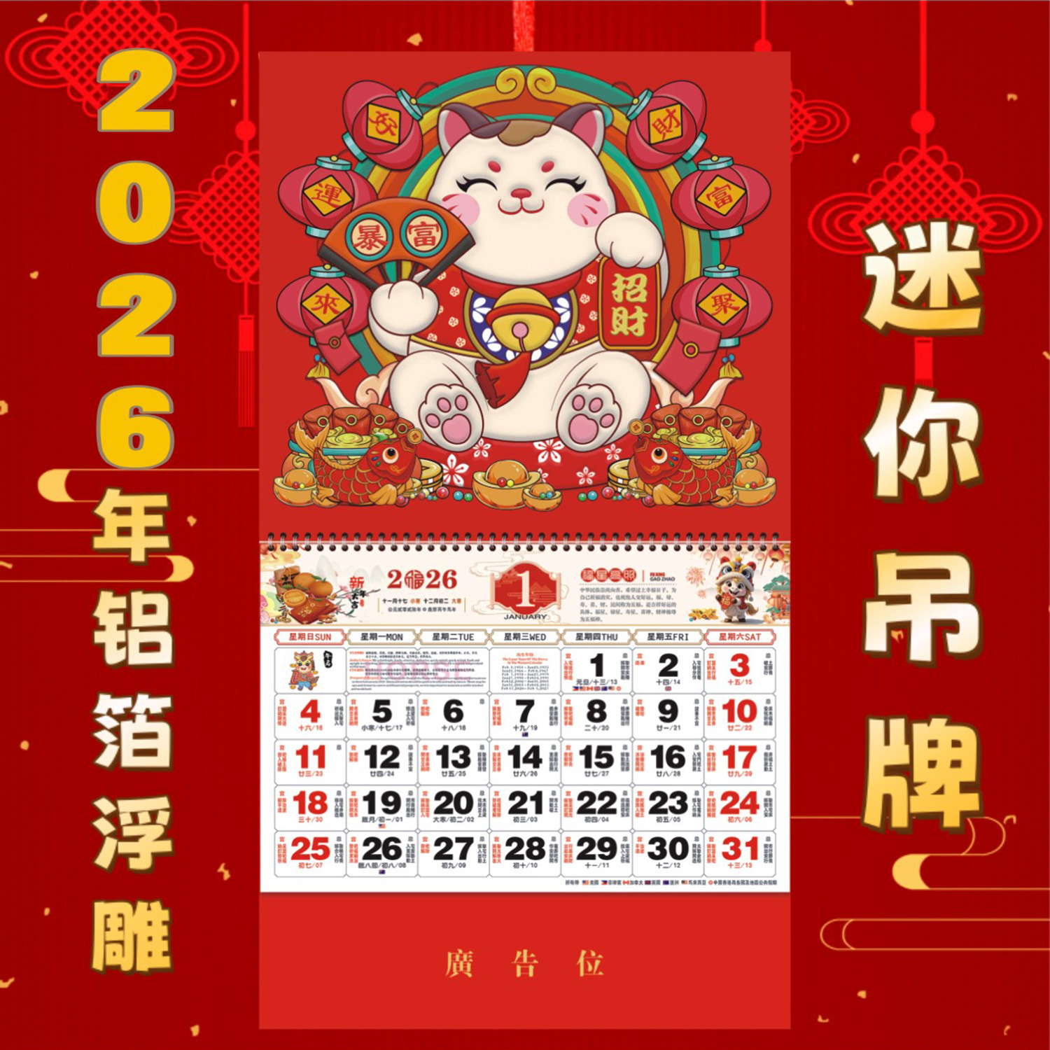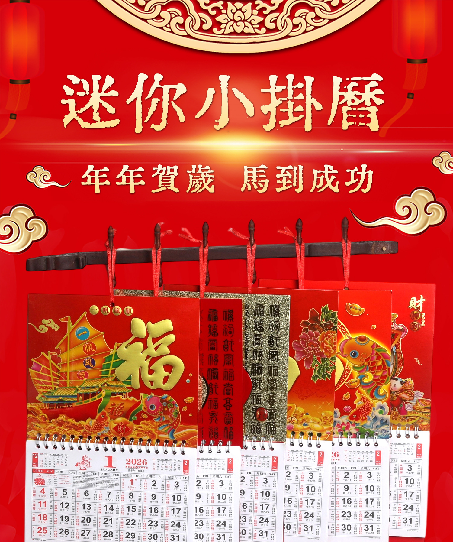 2026年馬年金箔小福字吊牌香港休日ミニカレンダー繁体字月間カレンダー外貿版壁掛けカレンダー