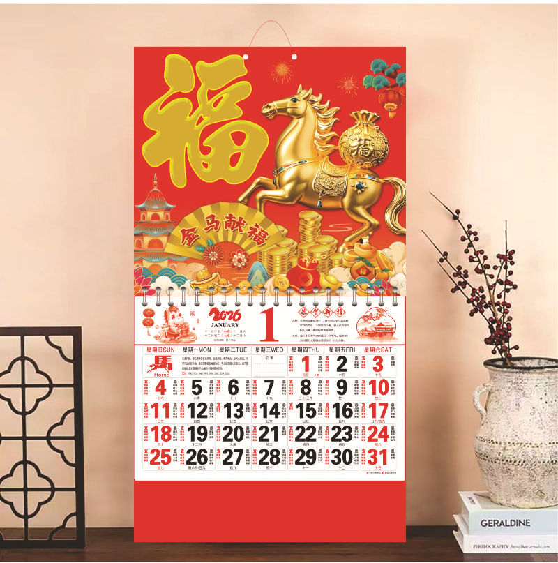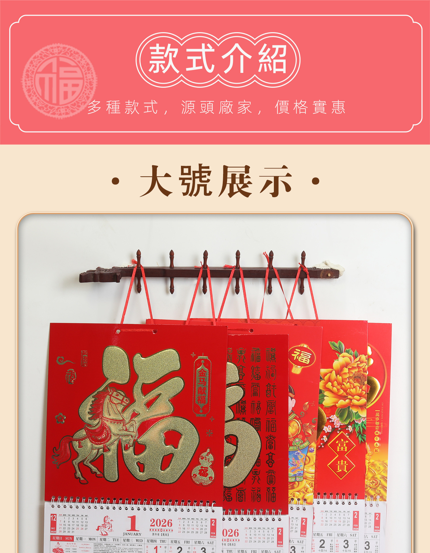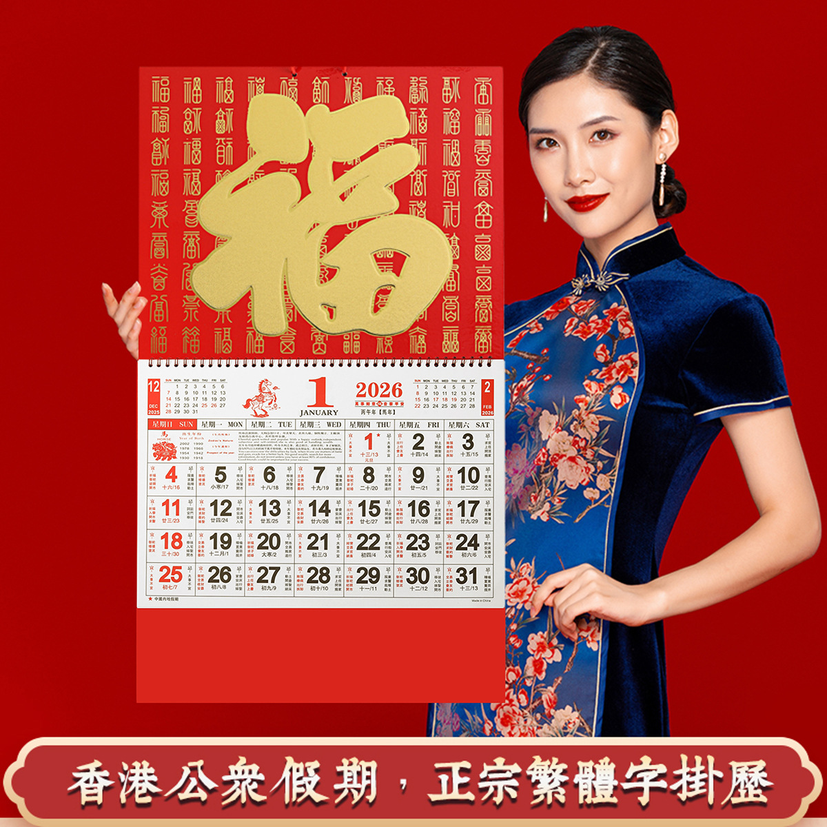 2026年壁掛けカレンダー 香港版 休日カレンダー 馬年輸出カレンダー 福文字入り伝統月カレンダー 外貿公開版月カレンダー 壁掛けカレンダー