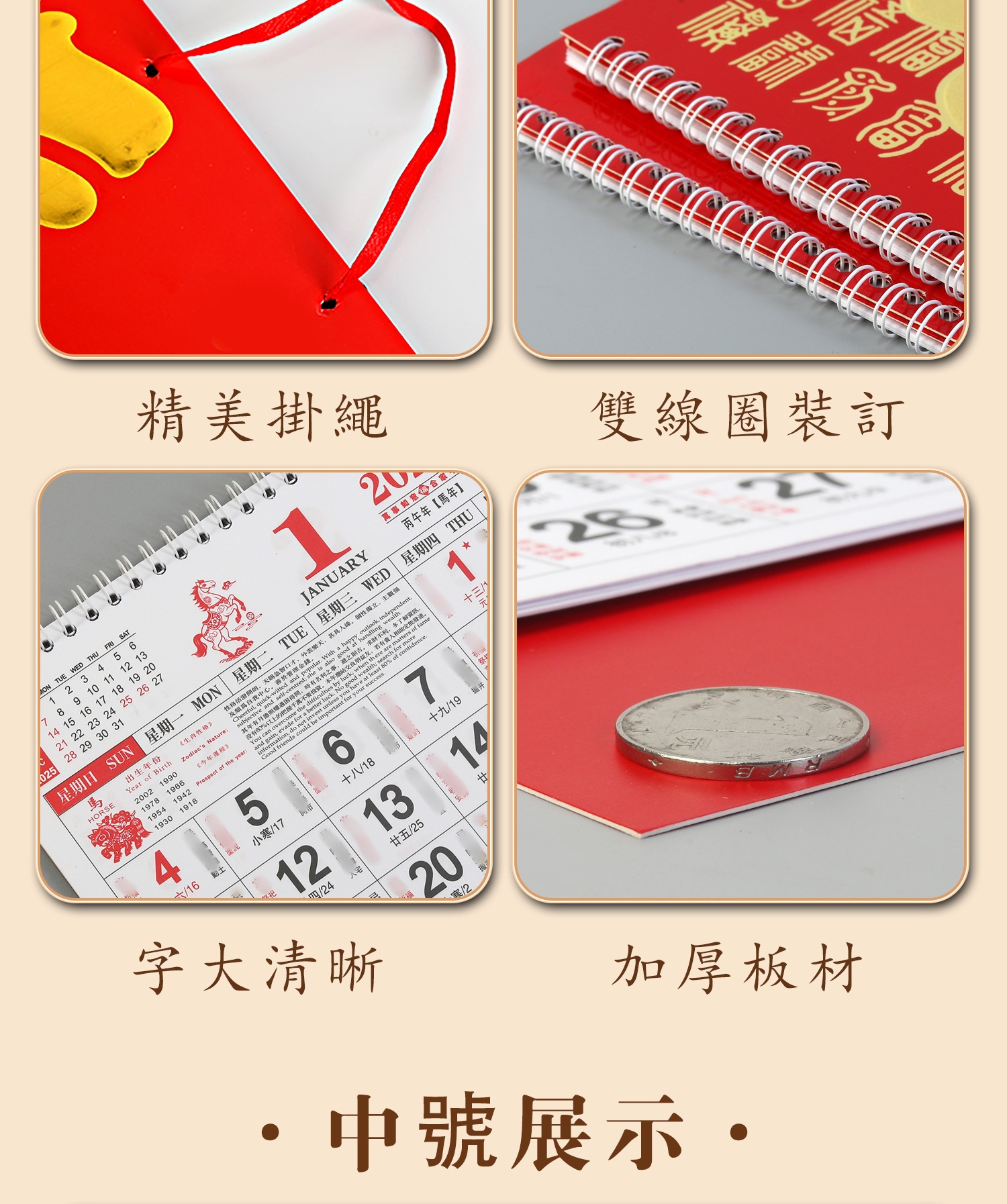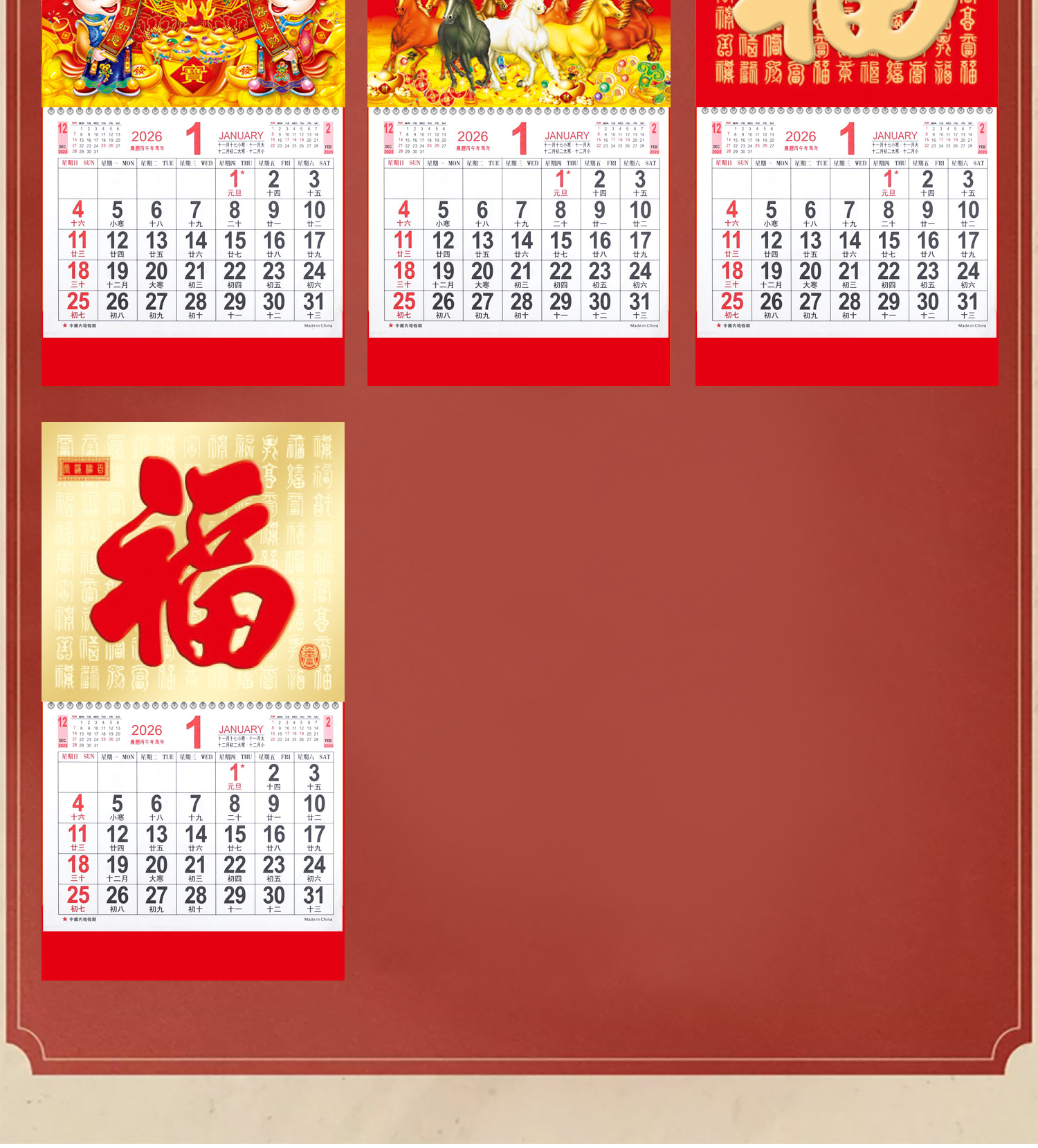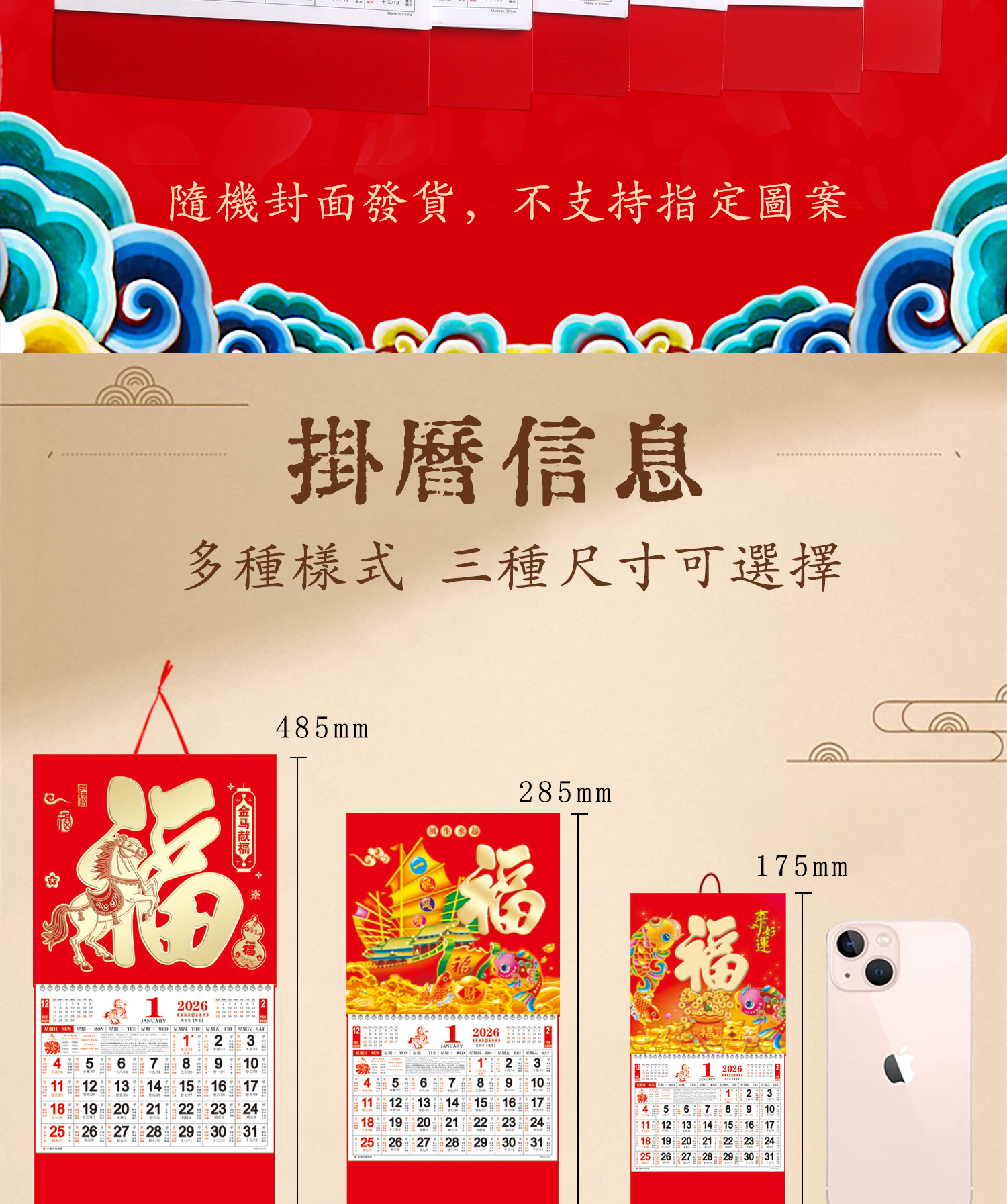 2026年壁掛けカレンダー 香港版 休日カレンダー 馬年輸出カレンダー 福文字入り伝統月カレンダー 外貿公開版月カレンダー 壁掛けカレンダー