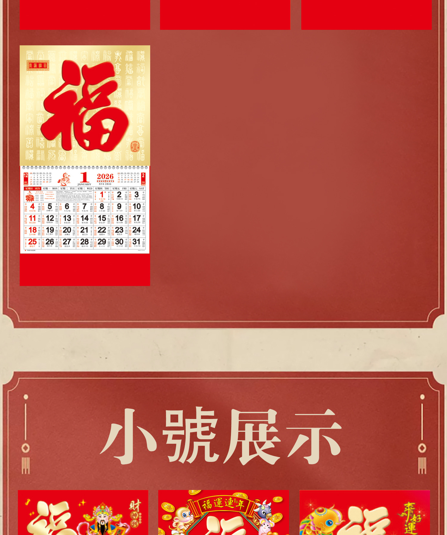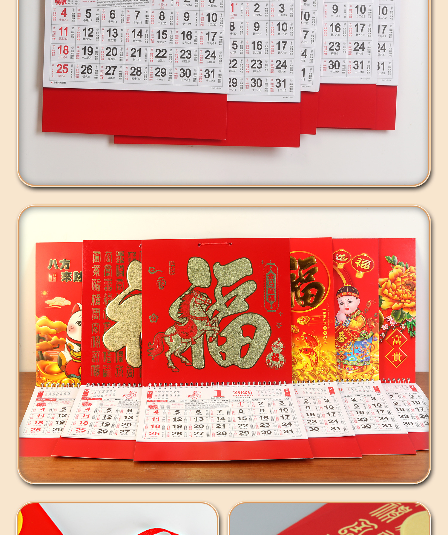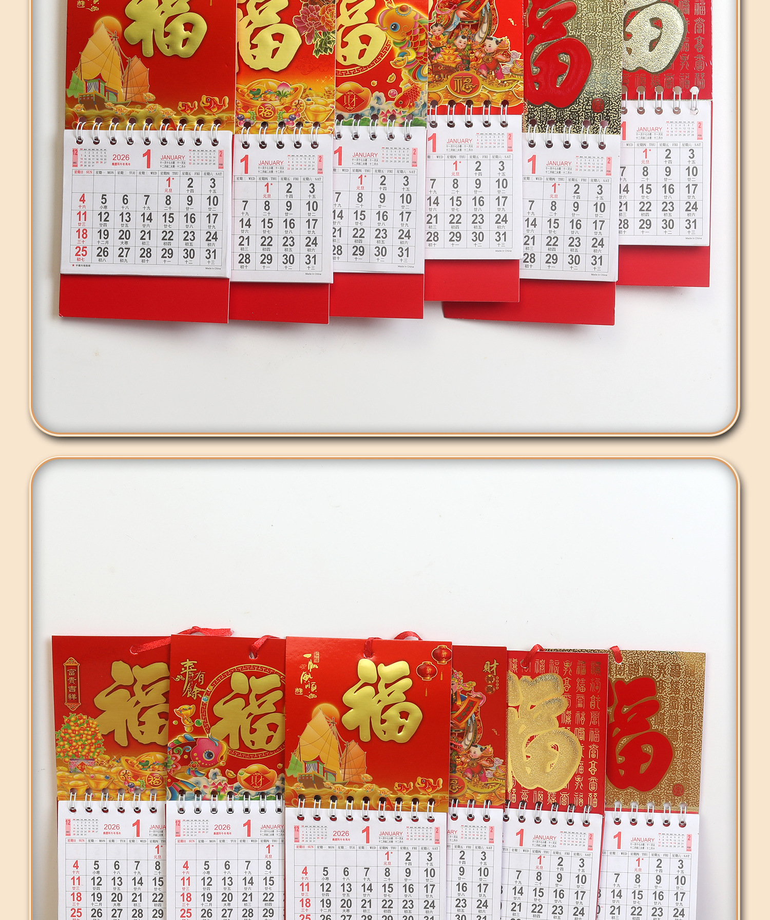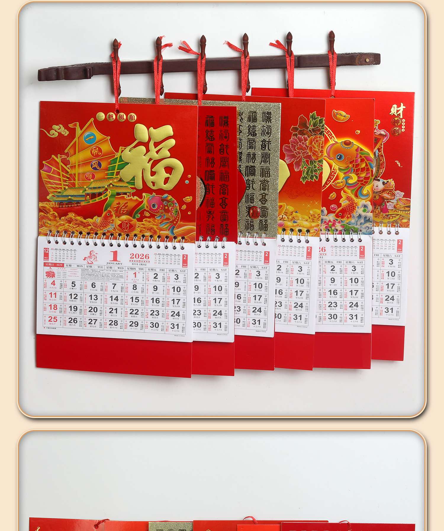 【厂家批发】2026年福字挂历烫金新款马年日历整年跨境吊牌代发