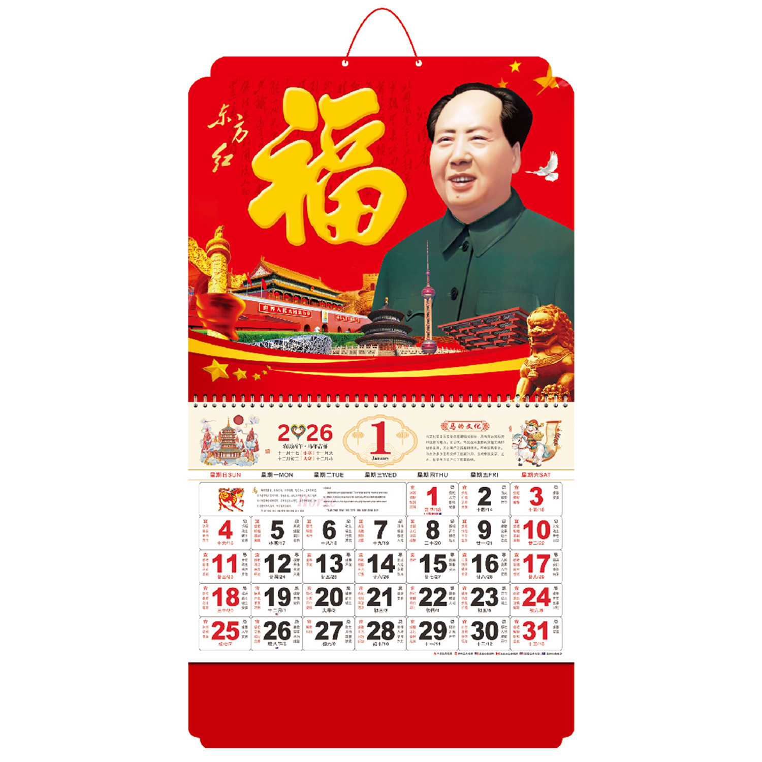 2026年馬年 毛沢東像入り壁掛けカレンダー 毛沢東の福字入り吊り下げカード 一世紀の偉人 月間カレンダー 卓上カレンダー