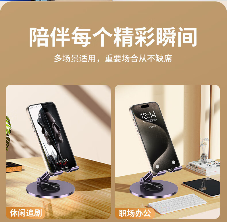 批发手机壳支架桌面全金属懒人通用便携折叠式720旋转桌面