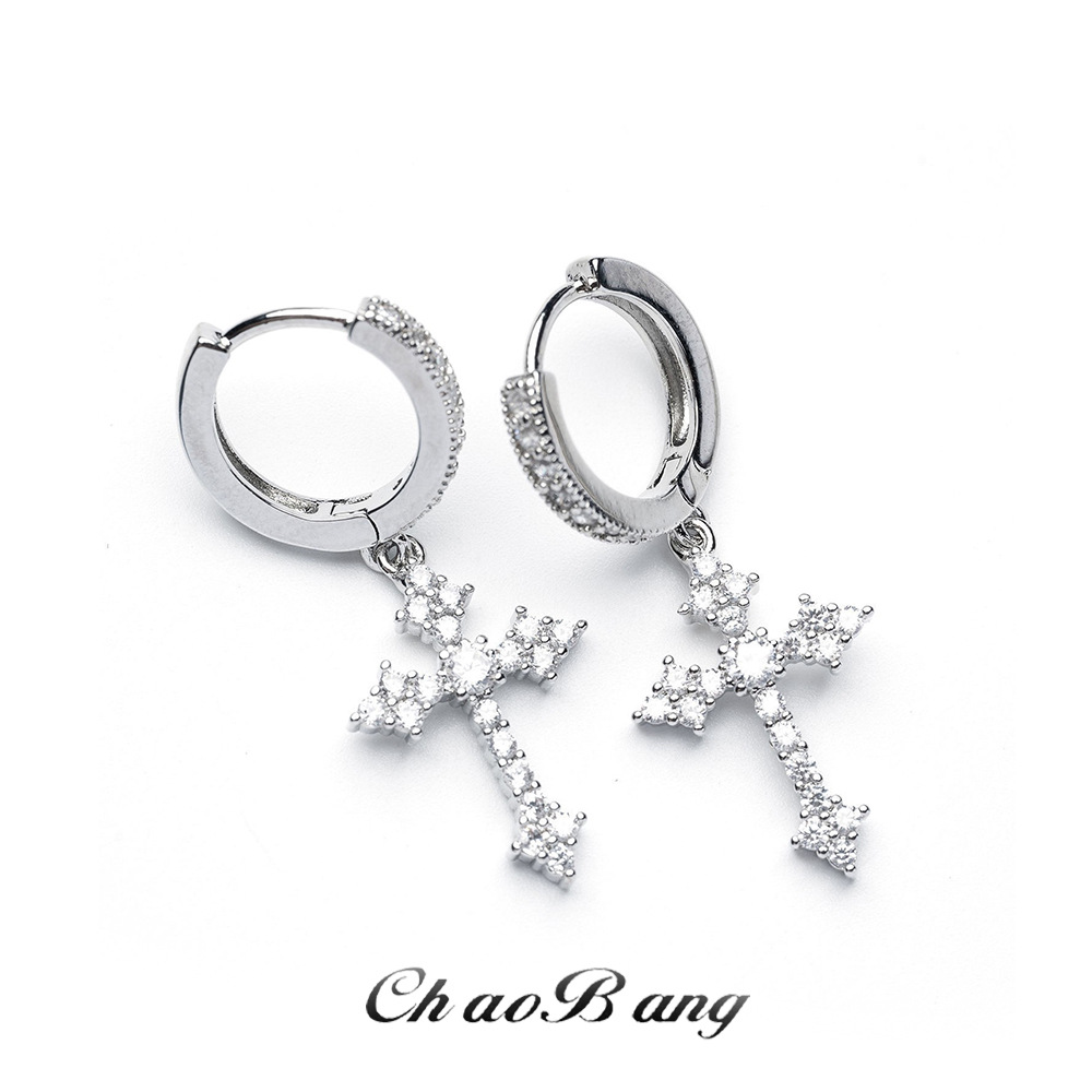 十字架耳钉男时尚欧美风小众潮流嘻哈个性男士耳扣设计高级感耳饰