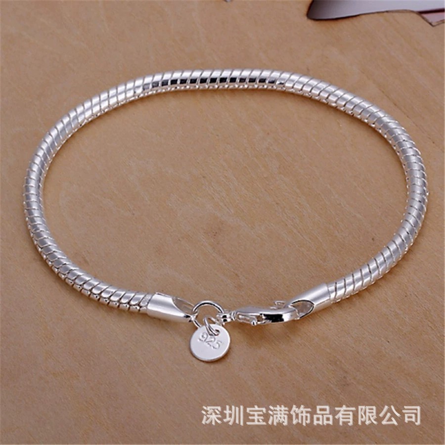 外国貿易ホットセールファッションパーソナライズ 3 4 ミリメートルメッキ 925 シルバーソリッドスネークボーンブレスレットメーカー供給シンプルなラウンドシルバージュエリー