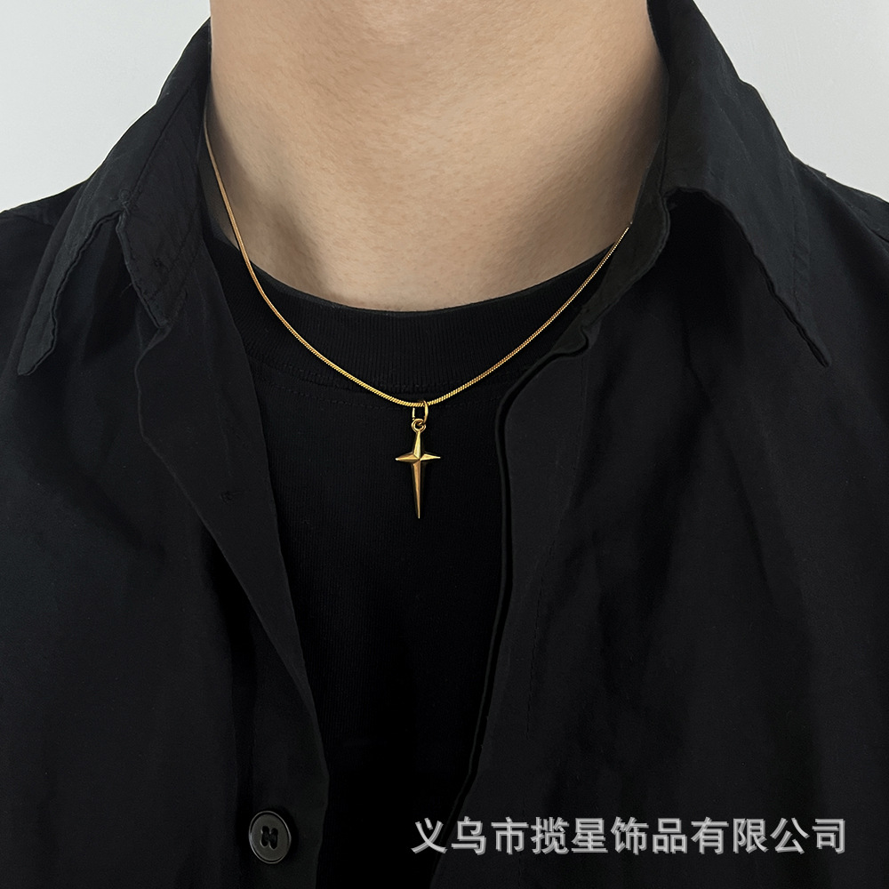 クロスの星の芒のペンダントのネックレスの男性の潮の蛇の骨の鎖の小さい大衆の高級感のチタンの鋼は色を落とさないで、鎖の鎖の女性を合わせます。