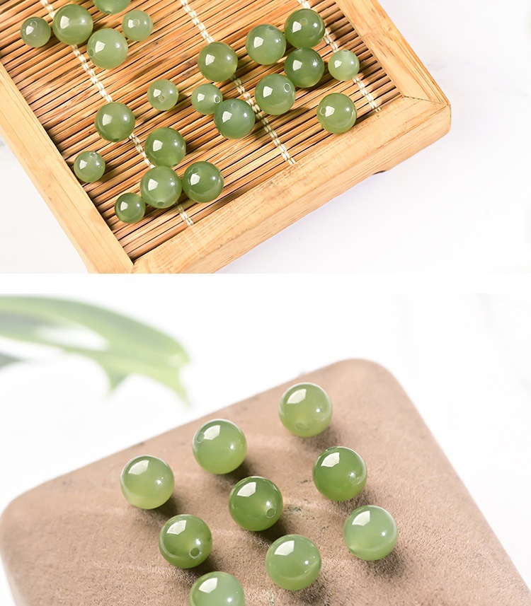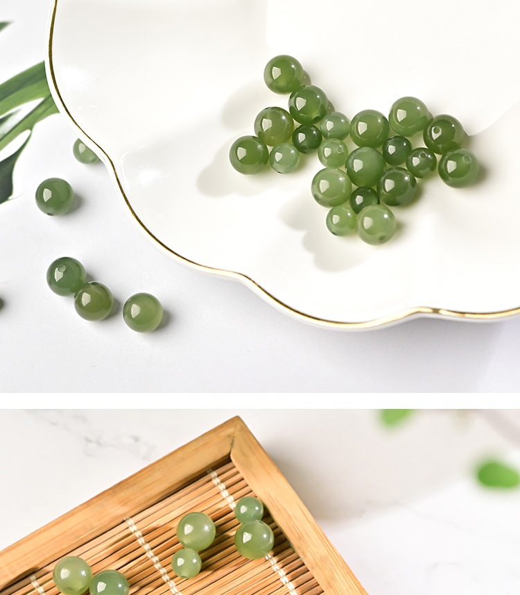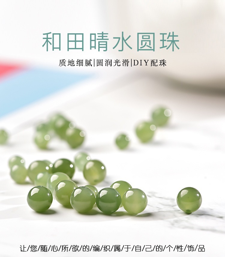 天然和田玉晴水緑湖水円珠青海料散珠通孔配珠高氷無雑無裂卸
