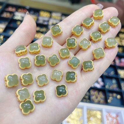 天然和田玉四つ葉草925銀金メッキビーズビーズビーズビーズビーズ仕掛品diyブレスレットアクセサリージュエリー