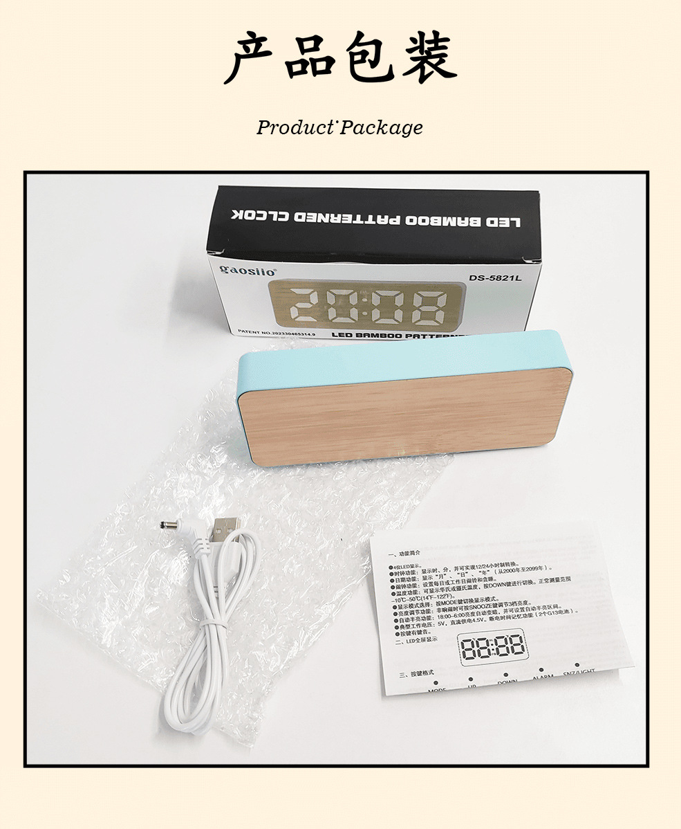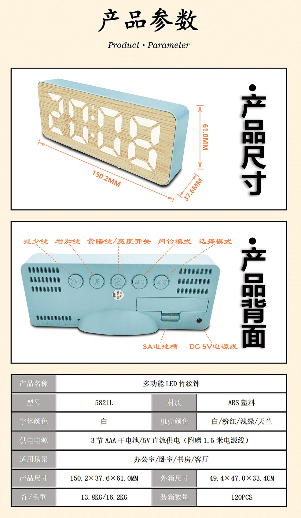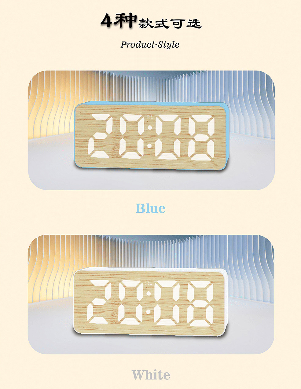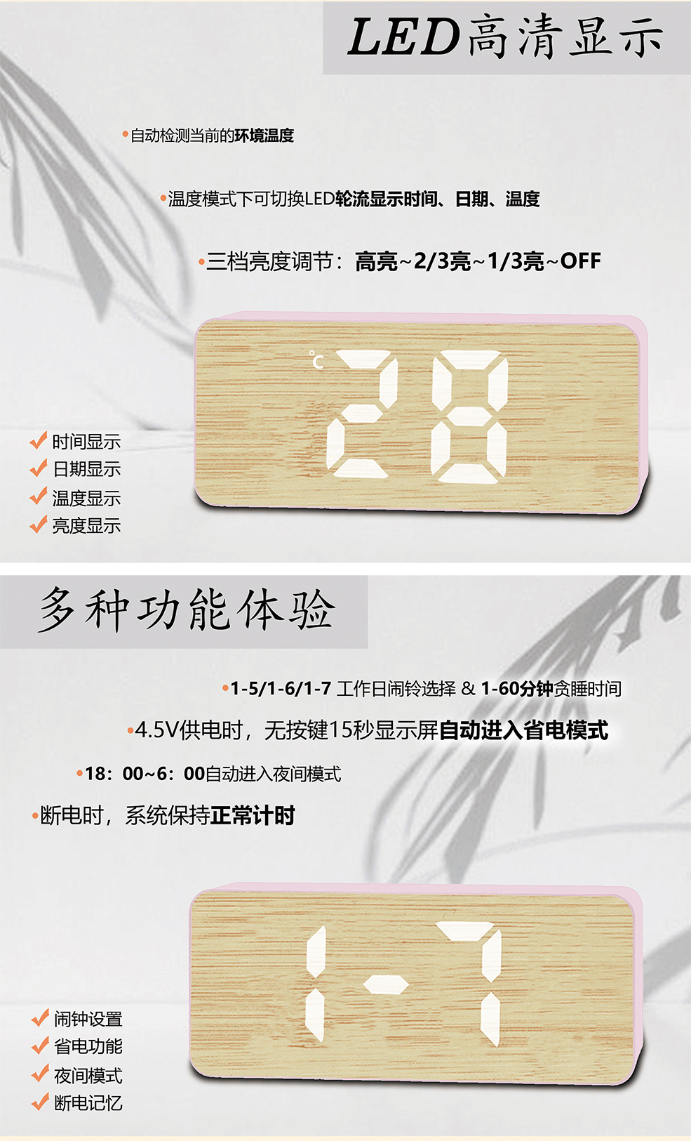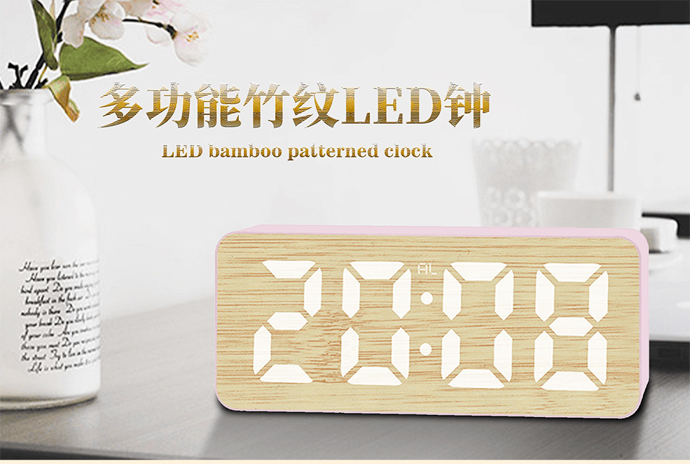 卸売り多機能定時寝坊時計大画面デジタル表示LED竹紋時計電子デジタル時計静音目覚まし時計