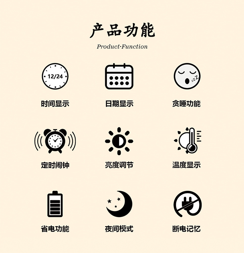 跨境热销便携小时钟 高清数显静音设计 可磁吸可立放桌面时钟经典