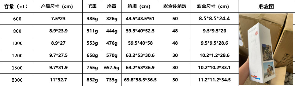 600mL,800mL,1000mL,1200mL,1500mL,2000mL